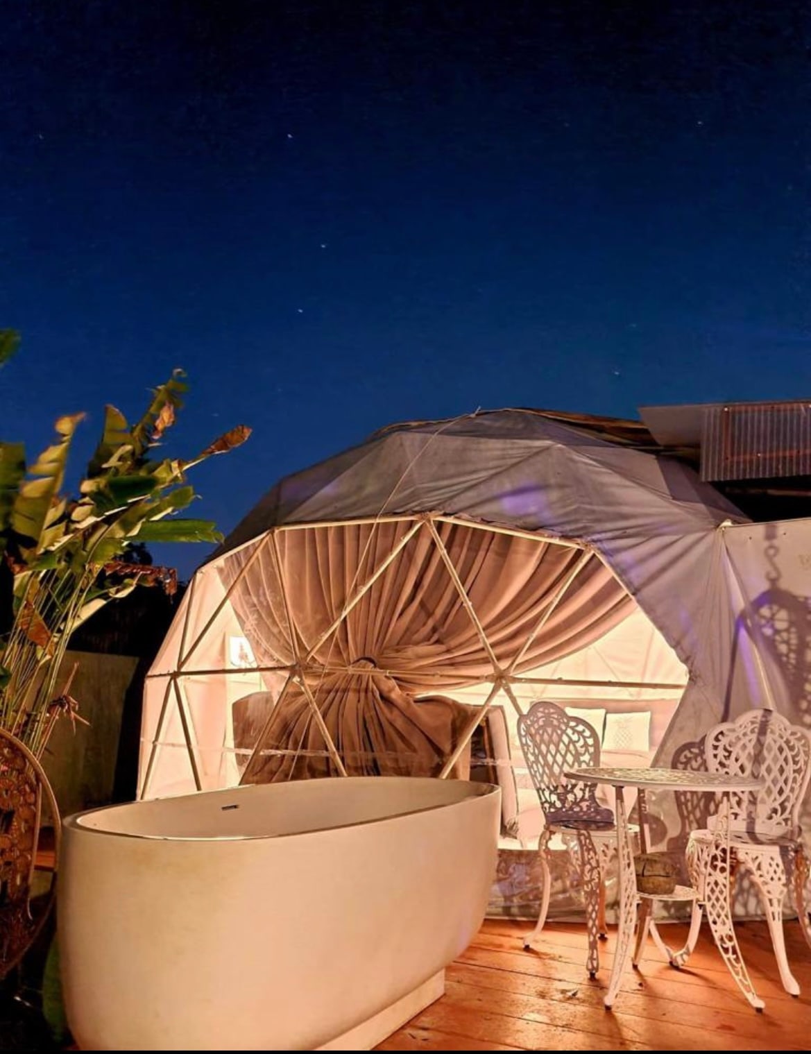 Una nueva escapada de lujo en Dome Galmping con piscina privada en tu propia tienda de campaña. Ubicado en la belleza de la exuberante montaña tropical en Rawai Phuket. A solo 5 minutos de la hermosa playa Naiharn en el extremo sur de la isla. Cerca de todos los restaurantes, bares, tiendas y muchos miradores famosos.
