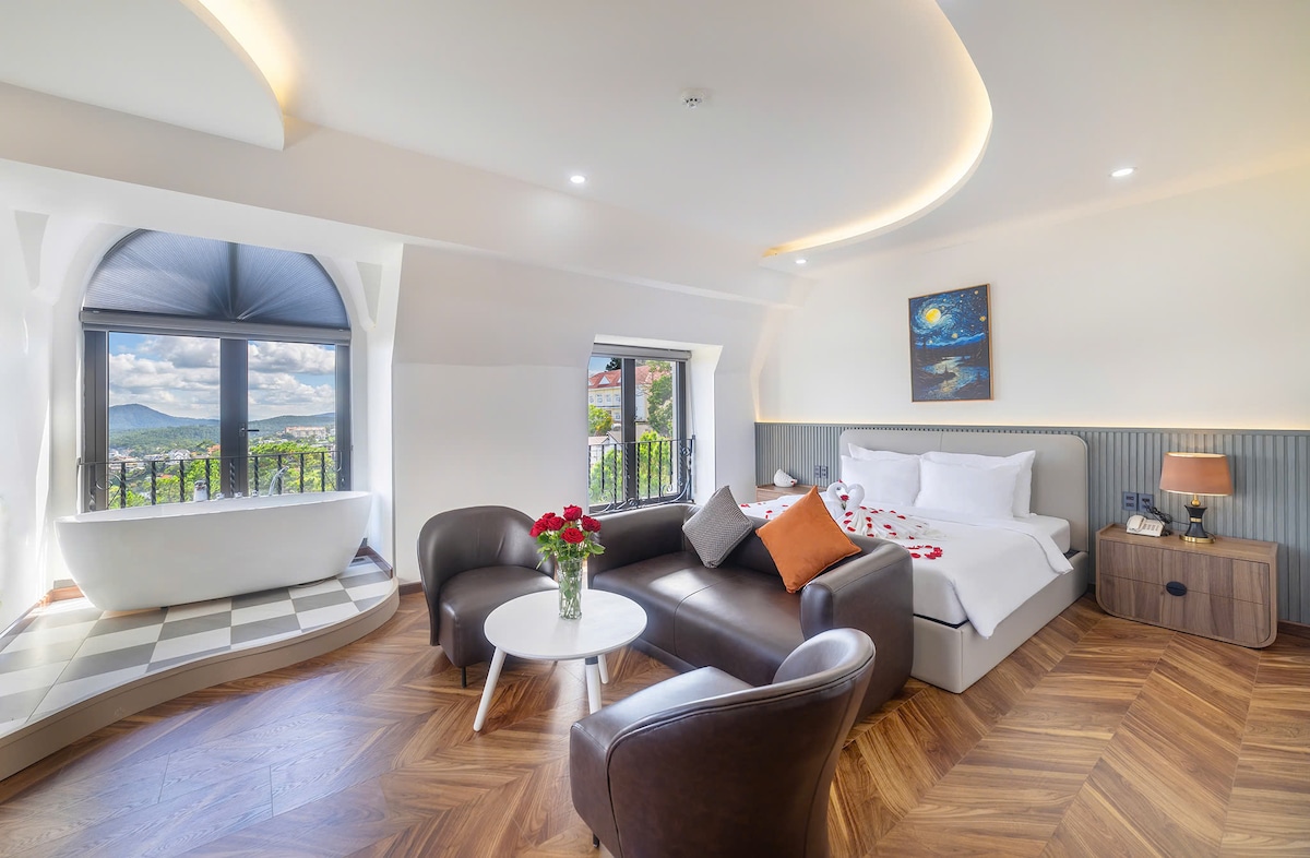 Un acogedor estudio en Dalat, ubicado en una pequeña colina con vistas a una parte serena de la ciudad. La habitación incluye un baño adjunto con una ducha hundida que funciona como una bañera fresca en los días cálidos. Diseñado con un diseño abierto para acercar la naturaleza a tu estancia. Por qué nosotros: Excelente ubicación: a 10 minutos a pie del centro de la ciudad, puestos de comida cerca. Exuberante jardín. Desayuno casero gratuito, adaptado a tu dieta. Café y té gratis en cualquier momento. Aparcamiento seguro y espacioso. Familia anfitriona amable: te hará sentir como en casa.