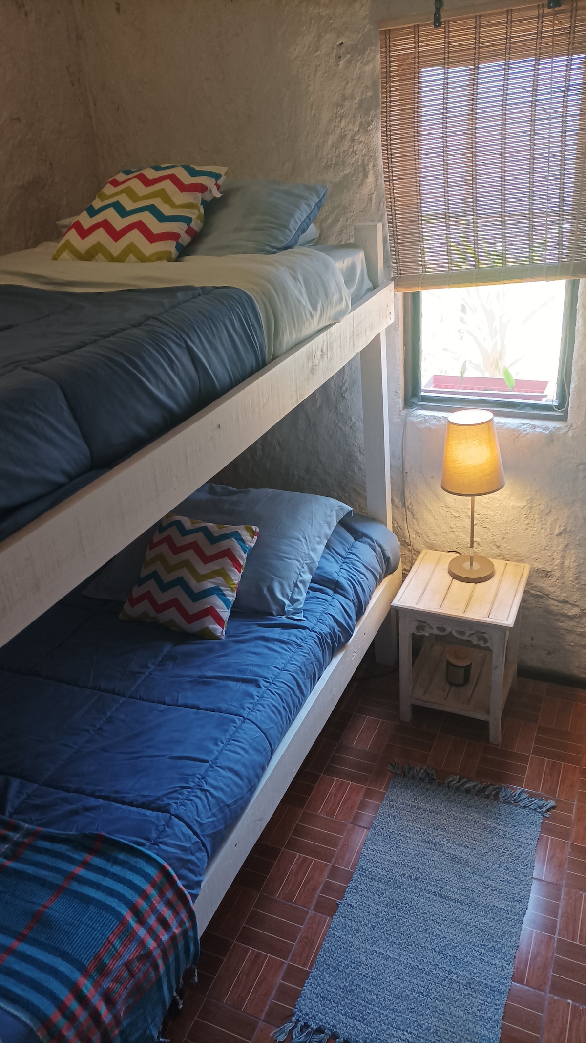 Esta Cabaña esta fabricada con bio-construcción. Diversos materiales de la zona tales como: sal, barro, cañas y madera dan vida a este refugio. Rodeada con árboles frutales y plantas medicinales, crean un entorno único, podrás disfrutar de la tranquilidad y la naturaleza en medio del oasis de Pica.