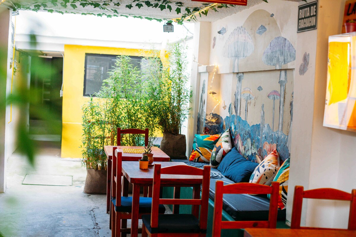 Hola! Somos la comunidad perfecta para nómadas digitales o backpackers. Aquí puedes descansar y a la vez disfrutar de varias actividades según la temporada. Mira los eventos en IG @bunker_hause, síguenos y recibe una bebida de cortesía a tu gusto al chequearte y mostrando tu follow✨ Su céntrica ubicación te llevará fácil al Parque de la Carolina; el nuevo Metro de Quito; El Teleférico ideal para corto o largo hiking; entre otros lugares importantes.
