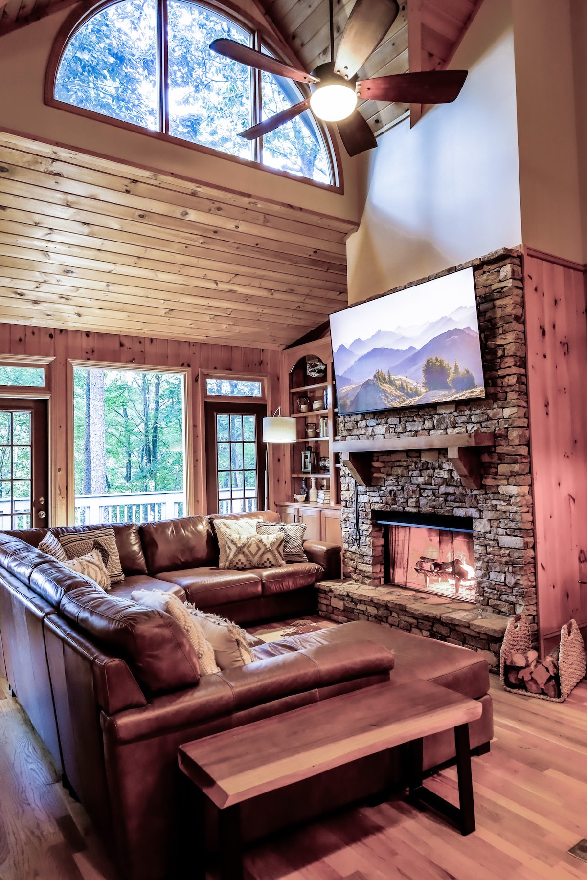 Find comfort and relaxation at this cozy 2 bedroom 2 bath mountain condo. Tucked away in the Appalachian Mountains, Bearfoot Retreat has every creature comfort you could want to make your stay feel like home away from home. Featuring a wood burning fireplace, lake and rockslide view, with an outdoor bar overlooking the woods - this is the retreat you've been looking for, with all the modern amenities; a coffee bar, 70 in smart tv, Smart Home and more.
