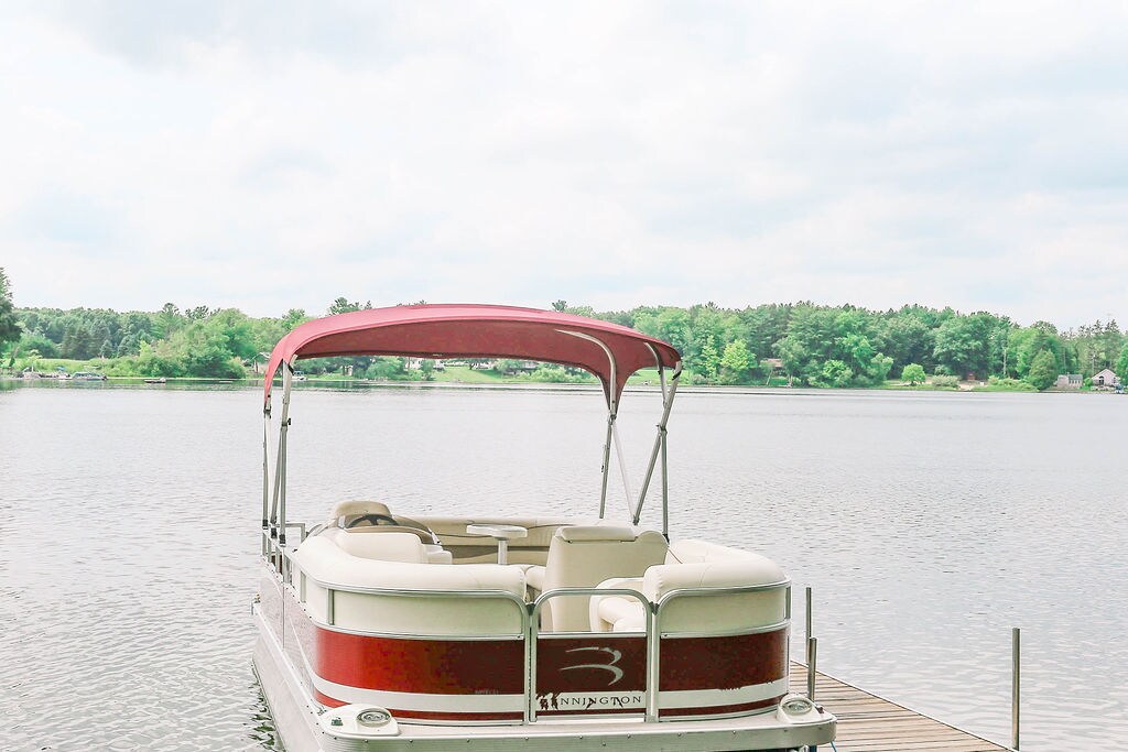 Nestled in a small cove on a large lake, this waterfront cottage has been completely renovated. It has 66' of private shoreline; an elevated front deck plus side patio; and stone bonfire pit & gas BBQ grill. Guests also get FREE & exclusive use of pontoon boat, 2 kayaks and paddle boat, plus private dock (early May through late October, weather permitting). Swan Cottage is very dog-welcoming. The yard is not fenced, however we provide ground stakes & cable ties.