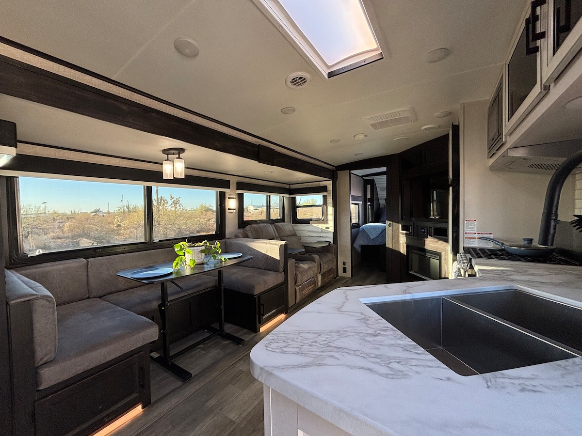 Ahora tienes la oportunidad de disfrutar de Airstream-Del Sol-a '16 Modern Airstream, 24' decorado en un estilo clásico del suroeste. ¡Piscina y putting green! Aperitivos, agua y vino de cortesía a tu llegada. ¡Salga por la puerta a un patio privado, parrilla, asientos y vea las puestas de sol! En el lado opuesto... ¡encontrarás una hermosa piscina, cabaña, cornhole y putting green! Ubicado en las estribaciones de San Tan Valley, ¡este moderno Airstream tiene todas las características necesarias! Cerca de senderismo, golf, comida, etc. ¡Guau! ¡Tú decides!