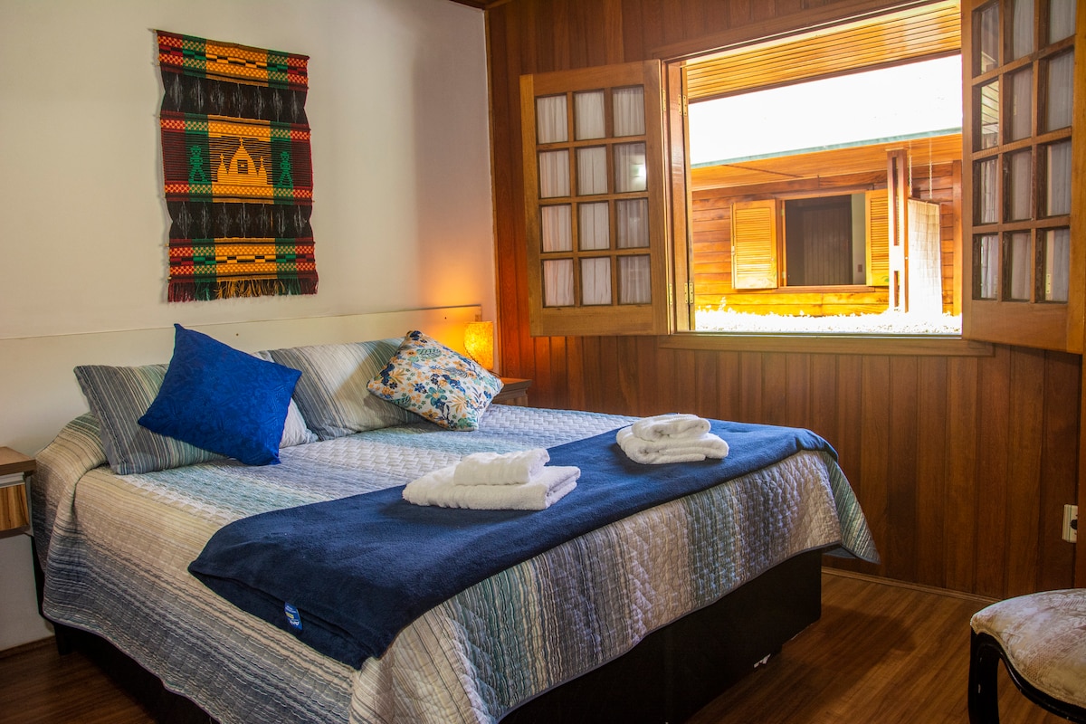 Este chalé possui uma varanda com rede para o jardim, chalezinho com cama quenn ,tv 32 smart,ar condicionado quente e frio , lareira ,frigobar e uma deliciosa banheira com teto de vidro encima dela. Nosso pacotes incluem café da manha e tem wi-fi por toda pousada . caso queira conhecer mais sobre nossa pousada só pesquisar pousada chale Luiz em santo antônio do pinhal. Estamos localizados a 3 km do centrinho aonde tem varias opções de restaurantes bons e pontos turisticos .