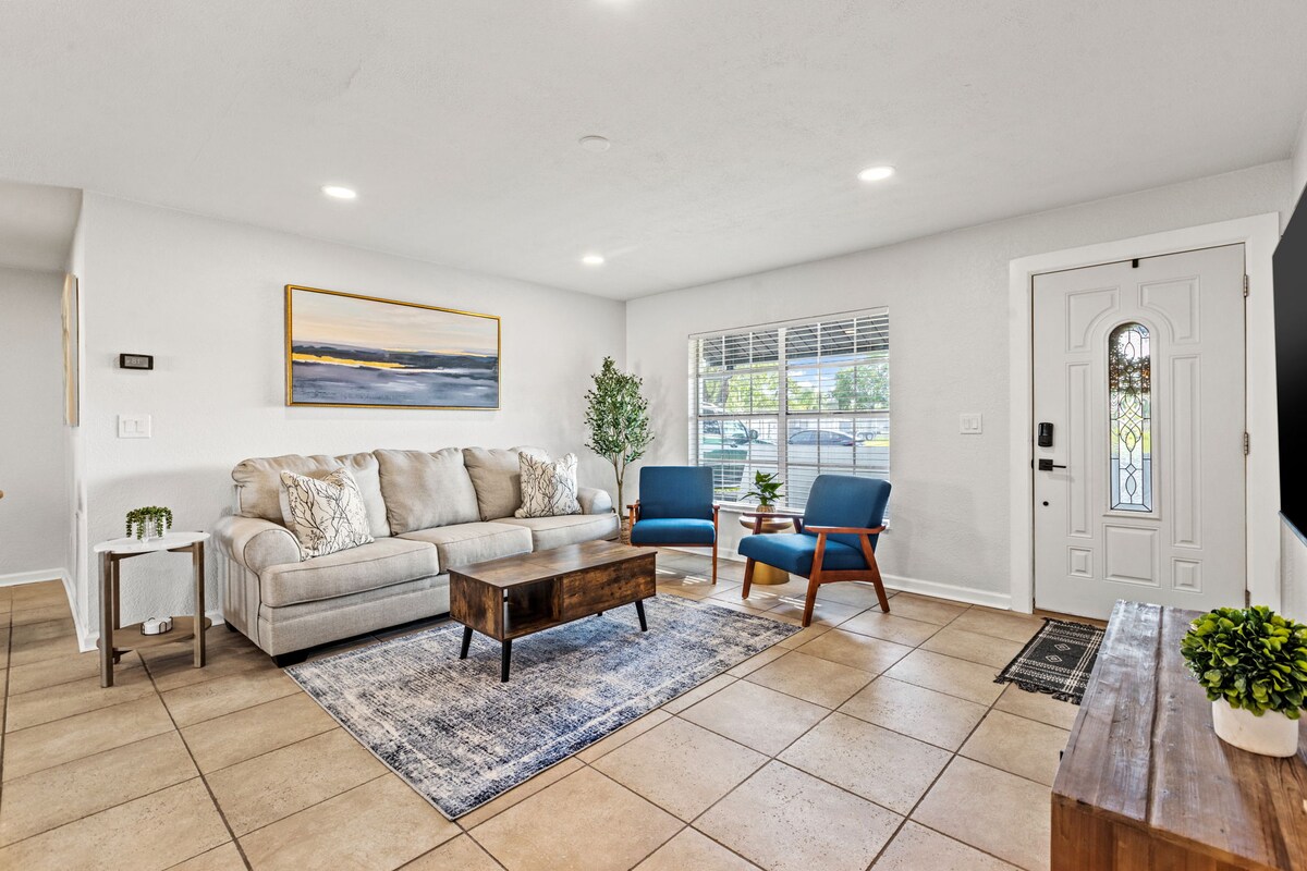 🏡 Crea recuerdos inolvidables en esta acogedora casa de 4 dormitorios y 1 baño con piscina climatizada que duermen cómodamente hasta 10 huéspedes, perfecta para familias y grupos. A solo 20–25 minutos del Aeropuerto Internacional de St. Pete–Clearwater y a 10–15 minutos del Aeropuerto Internacional de Tampa, además de a solo 25–30 minutos de las mejores playas como Clearwater Beach, Madeira Beach y St. Pete Beach. También estarás a poca distancia en auto de centros comerciales, parques, campos de golf, restaurantes y atracciones locales.