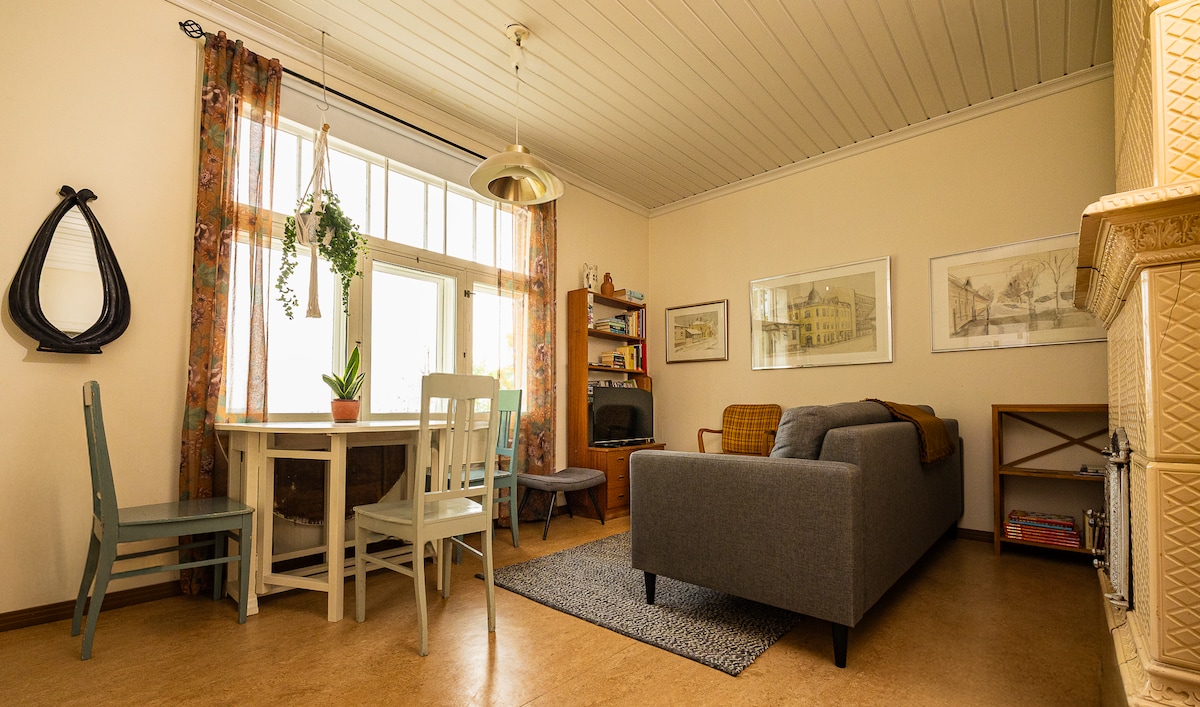 ¡Apartamento único en una antigua casa de madera justo al lado del centro de la ciudad! Hay un paseo de 15 minutos hasta la estación de tren y el centro de la ciudad. ¡A 2 km del parque de atracciones Särkänniemi! ¡El apartamento cuenta con una cocina totalmente equipada y una sauna muy atmosférica! El acogedor salón está equipado con TV inteligente de 65 pulgadas (¡Netflix gratuito para huéspedes!). Esta es nuestra casa y la alquilamos cuando estamos fuera. Tenemos un gato y un perro, así que si eres muy alérgico, ¡este no es un alojamiento para ti! Hay escaleras empinadas hacia la planta baja.