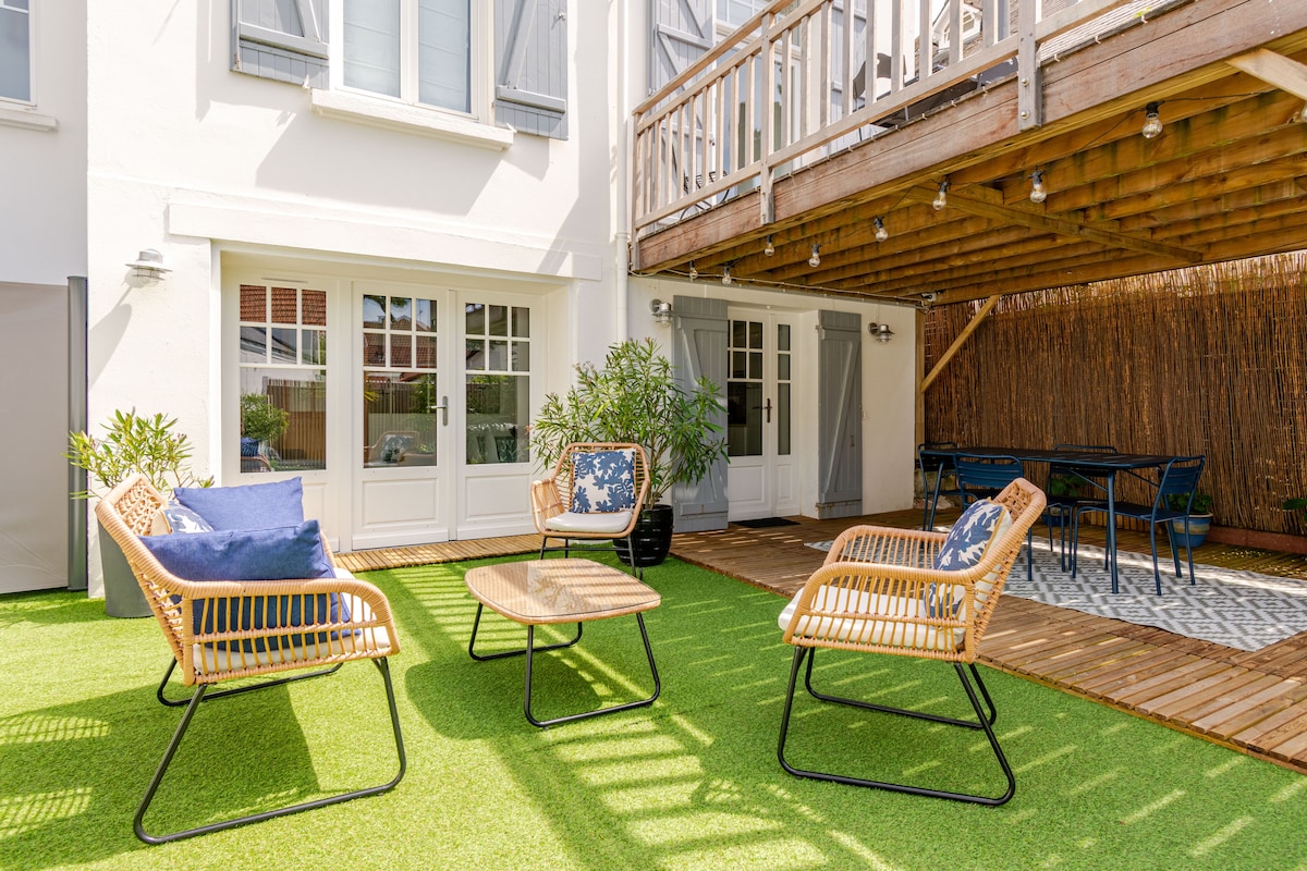 Océlya es un nido acogedor completamente renovado, ideal para una estadía en pareja o con bebé. Sofá cama, TV conectada, chimenea, cocina equipada, ducha de hidromasaje, lavadora. Habitación acogedora con ropa de cama cómoda. Se proporcionan sábanas, toallas y esenciales. Jardín privado de 24 m² orientado al sur, cerrado, sin vis-à-vis, con barbacoa y meridianos. Animales bienvenidos Tranquilidad, comodidad y encanto a menos de 500 m del mar y muchas actividades: equitación, tenis, pádel, casino, minigolf.