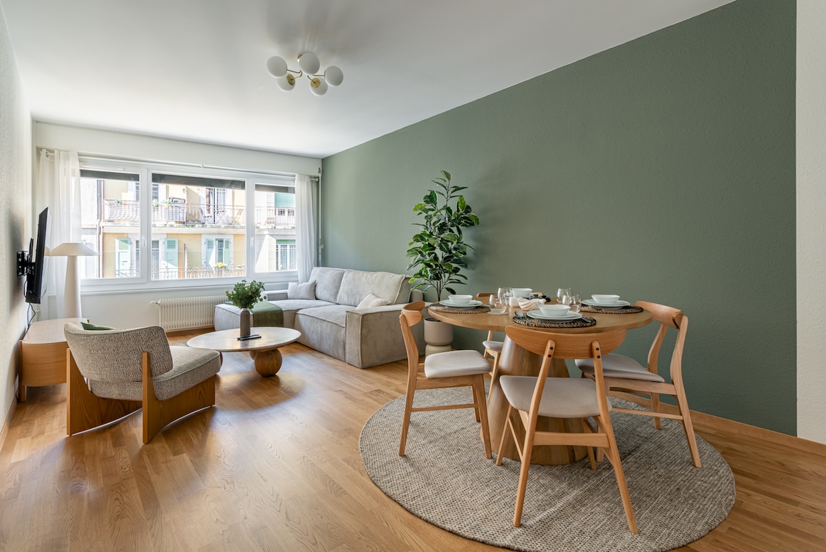 Amplio apartamento de 3 habitaciones en el corazón de Eaux-Vives, a pocos pasos del lago Lemán. Acogedora sala de estar, cómodo dormitorio con una cama de 180x200, cocina totalmente equipada, baño y aseo separado. Techos altos y luminosos y un ambiente tranquilo. Situado en una zona vibrante con cafés, restaurantes, tiendas y parques. Excelentes conexiones de transporte, a poca distancia del lago y del centro de la ciudad. Perfecto para relajarse después de explorar Ginebra, ya sea por trabajo o por placer.