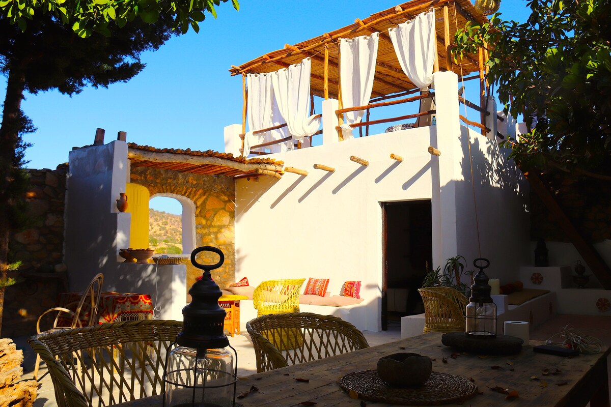 🌊 DAR MOGADOR OCEAN – Évasion élégante entre océan, montagne et traditions berbères Dans le village coloré d’Aghroud, animé en été, ce riad de charme fait face à l’Atlantique et offre des vues spectaculaires sur la plage et l’océan. Chaque lever et coucher de soleil devient un instant magique. À 30 km d’Agadir et 10 min des spots de surf de Taghazout, il allie authenticité marocaine, confort moderne et atmosphère apaisante. 🚗 Accès impératif en voiture. Parking gratuit devant la maison.
