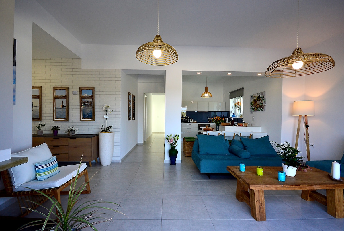 ¿Vacaciones en Creta? ¡Mímense con una villa de lujo con una gran terraza con vistas al mar! 3 dormitorios separados, cada uno con baño insuficiente, cocina totalmente equipada y momentos divertidos en nuestra jacuzzipool. Situado en la zona más hermosa: la playa de oro, a un minuto a pie del mar y a 3 km del centro de Chania. Supermercados, restaurantes, cajeros automáticos, taxi, parada de autobús cerca. La zona ofrece 4 playas, totalmente organizadas anualmente. A 5 minutos hay un pequeño parque para correr, que ofrece un parque infantil gratuito.