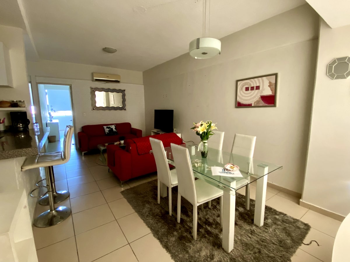 Apartamento de lujo de 1 habitación mas sofa cama.Capacidad para 2 a 5 personas, es importante colocar el número de personas ya que se envía un correo a recepción para el acceso, el condominio tiene todas las comodidades: aire acondicionado, y cocina equipada piscina, playa y terrazas. La hora de entrada para registrarse es de 1pm a 9:30pm,y salida pueden ser flexibles siempre y cuando se coordine con el propietario.