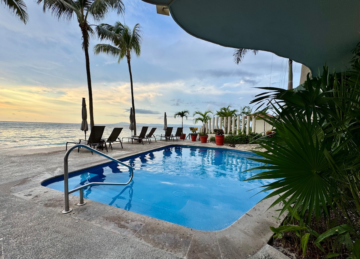 Beach front studio in the best beach in Puerto Vallarta, Playas Gemelas. The studio is located in Condominios Girasol Sur. It is equipped with everything you need to cook a meal, and have a glass of wine while watching a beautiful sunset at the balcony. Our guest can enjoy a swim in the large pool and have a morning walk on the beach just a few steps from the studio. Downtown is only 15 minutes away, you also have a restaurant and a convenience store in the building.