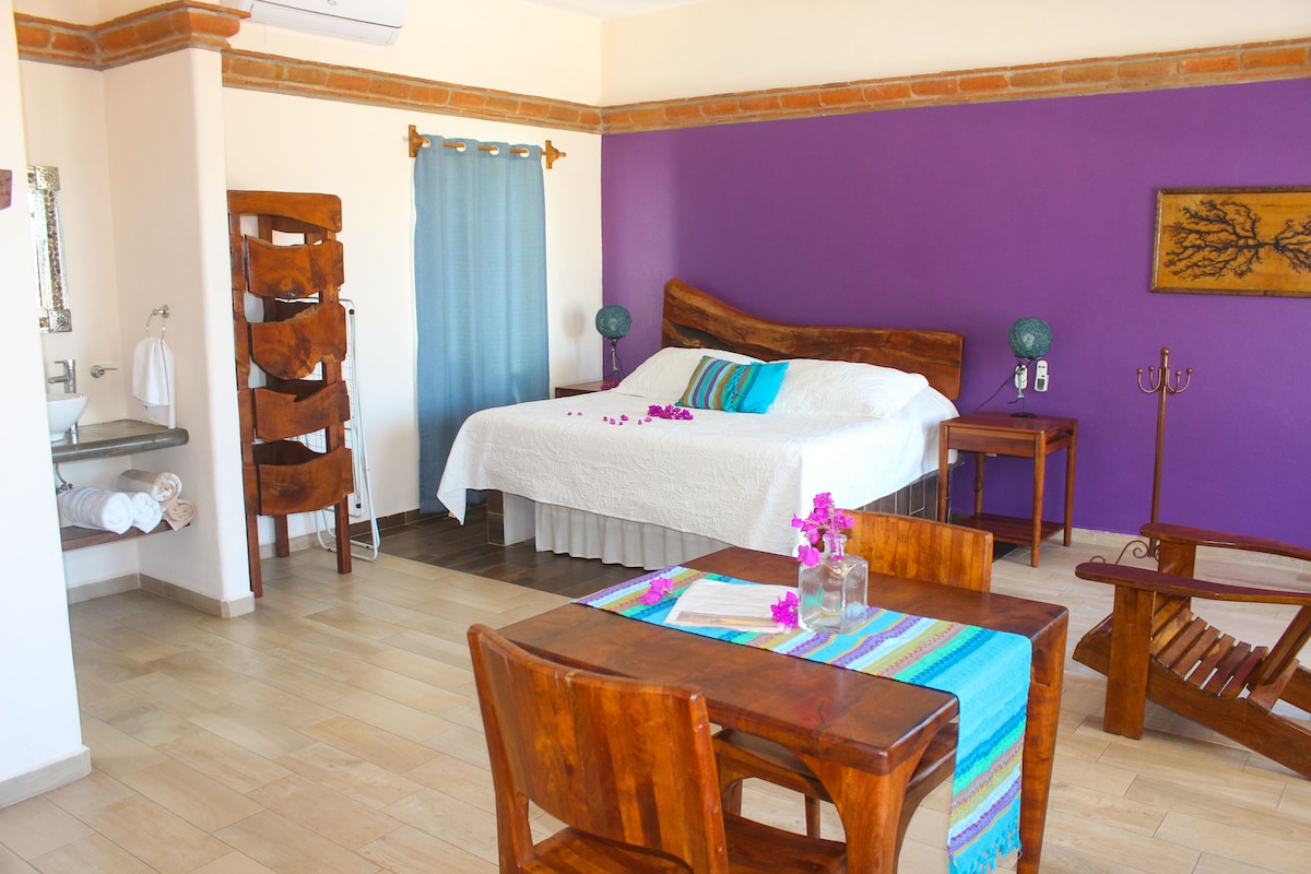 Estudio dentro del Hotel ubicado frente al mar, cuenta con todo lo necesario para pasar una excelente estancia en Sayulita: Cama tamaño king, Aire Acondicionado, Internet Gratuito, Alberca, Frente al Mar, estacionamiento y en la mejor ubicación de Sayulita. La villa no cuenta con vista al mar...
