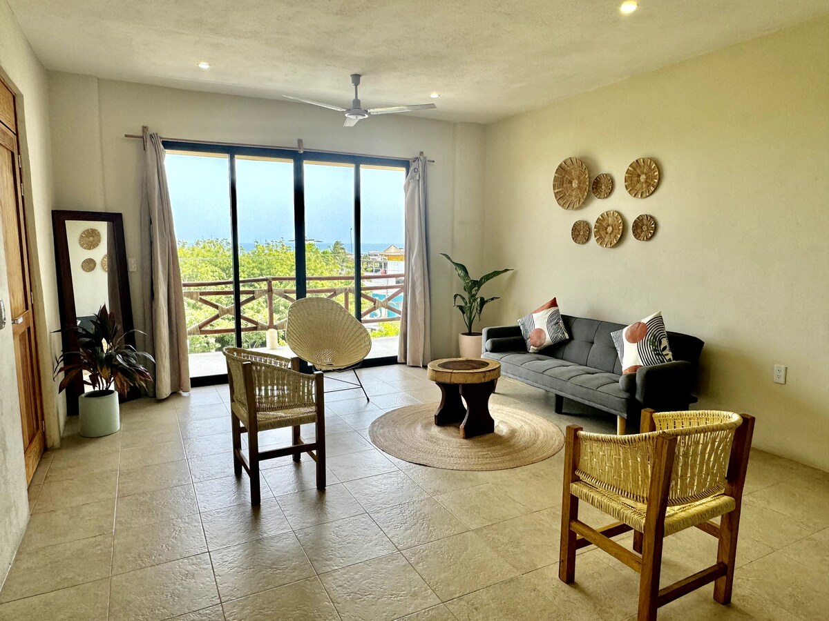 Dpto3. Zicatela Vista al mar | AC+Alberca+Starlink