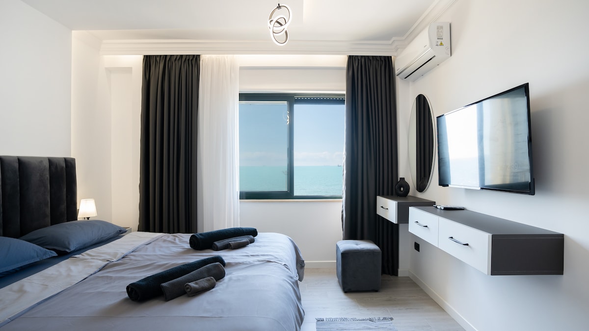 Located on the 15th floor of the tallest building, our luxury apartment is a masterpiece of modern design! With its chic furnishings and thoughtful ergonomics, every corner radiates style and comfort. Imagine sipping your favorite drink on the breathtaking spacious balcony enjoying sunsets and sunrises. Additionally, bedroom windows provide mesmerizing panoramic view of the endless Adriatic Sea. Each moment spent in this apartment would make you feel joy and ensure your vacation is memorable!