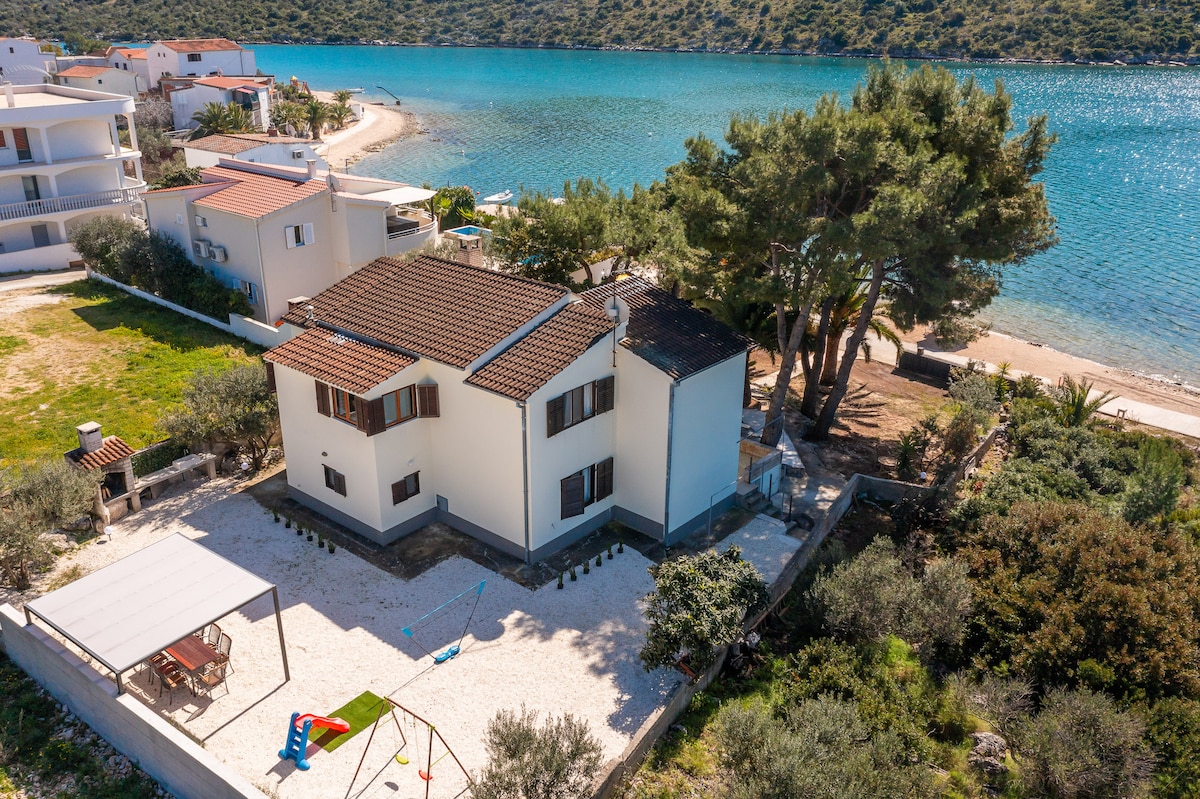 Es verano y la vida es fácil... Queridos huéspedes, bienvenidos a nuestra encantadora casa frente a la playa. Al pasar tiempo en un pinar privado rodeado de palmeras de más de 40 años, sean los únicos en escribir su historia de verano aquí. Disfruta de una brisa veraniega, una playa justo fuera de nuestra propiedad y un hermoso mar Adriático justo frente a ti. Quedamos a la espera de tu llegada.