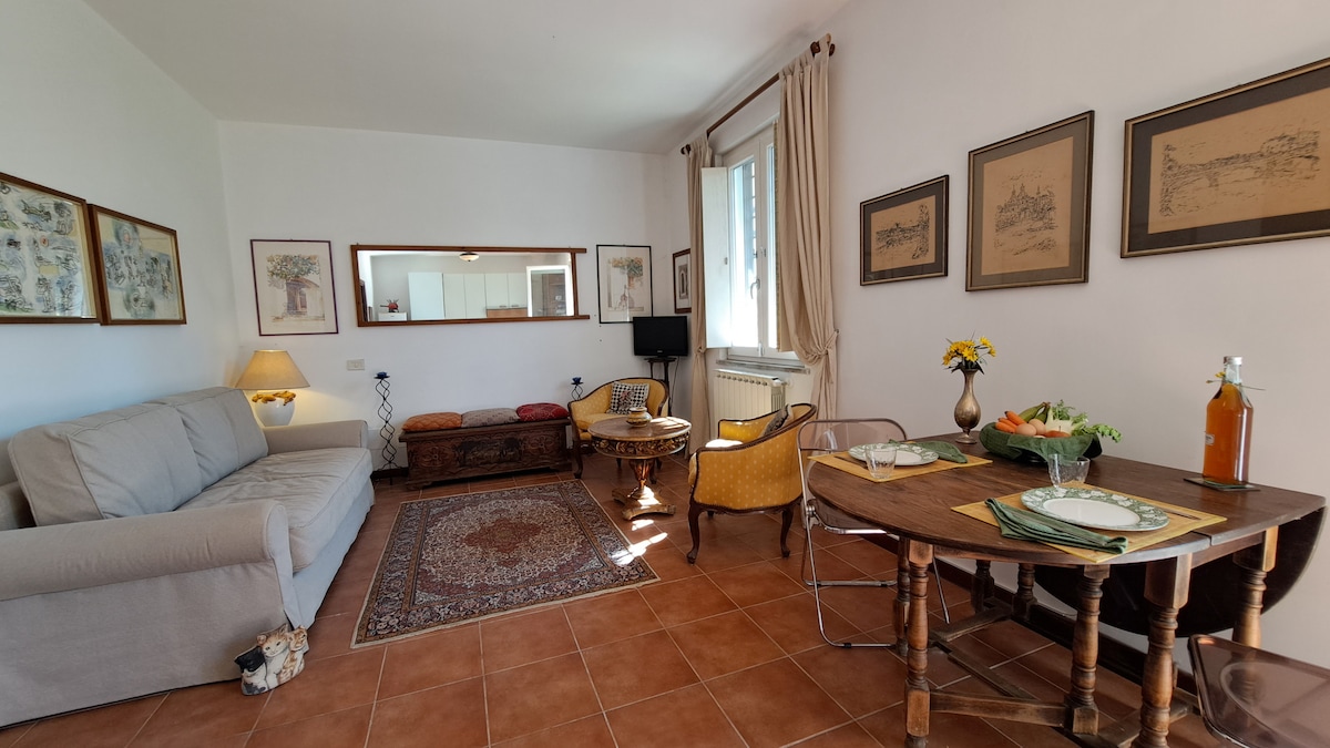 Luminoso y confortable apartamento en Villa a solo 30 minutos de Roma, en una zona residencial montañosa, con vistas a la campiña circundante.El apartamento está en la planta baja de una Villa con entrada independiente, aparcamiento interior y amplio jardín;puede alojar hasta cuatro personas, tiene un dormitorio,un baño,cocina americana equipada con utensilios, nevera, horno,microondas y sala de estar con wifi, tv, dos sillones reclinables, una gran mesa de comedor y un sofá cama doble.