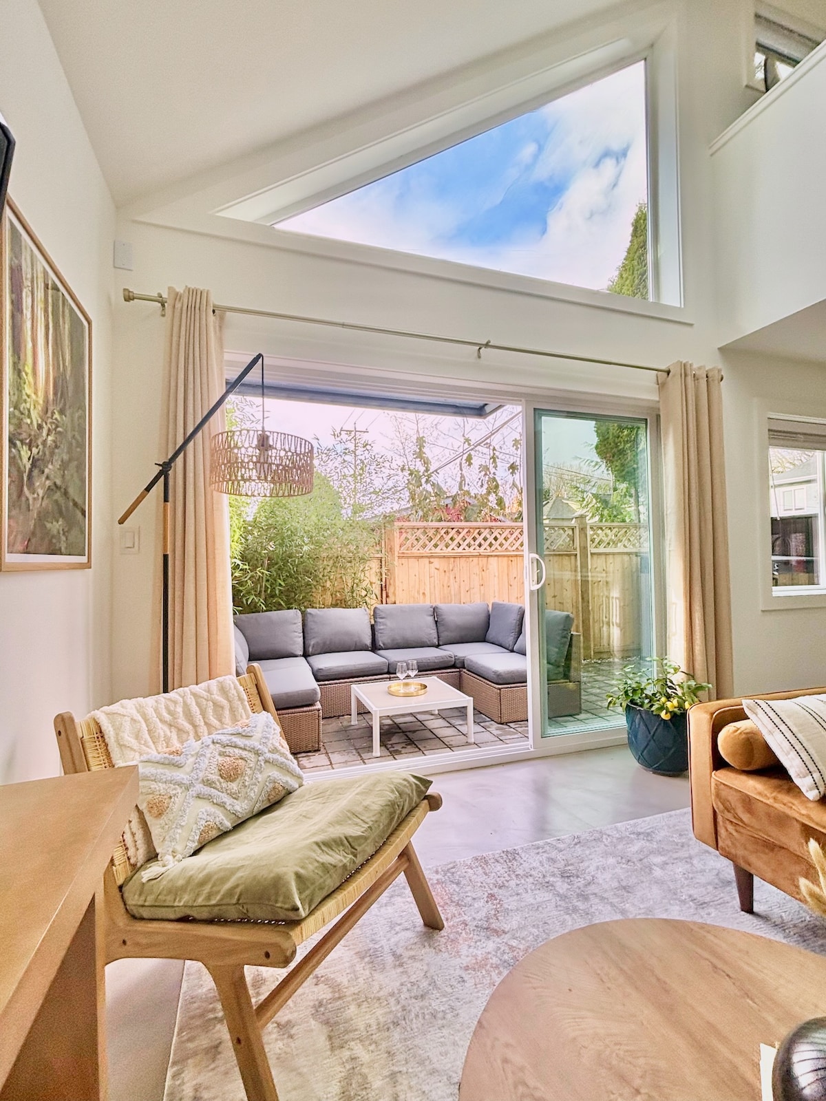 La comodidad moderna y el encanto acogedor te esperan en esta casa de huéspedes loft. Con una acogedora chimenea de gas estilo cabaña y una cama tamaño king, es el espacio ideal para relajarse después de un día de exploración. Esta casa independiente cuenta con cocina completa, patio privado y baño moderno con bañera. Ubicado justo al lado de la vibrante Commercial Drive, estás a solo unos pasos de los mejores restaurantes, bares y tiendas boutique de Vancouver. Y Skytrain está a solo 7 minutos a pie. Donde el estilo moderno se une a la calidez acogedora, ¡estamos deseando recibirte!
