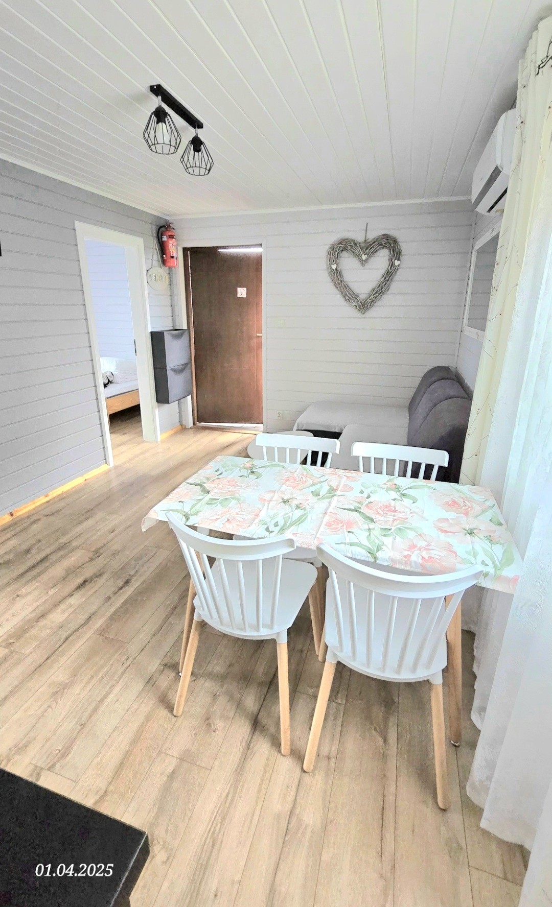 M&L Cottages Todas las casas de campo son cómodas y totalmente equipadas. Incluyen: – sala de estar con cocina americana, sofá cama – dormitorio n .º 1 con cama doble. – Habitación n .º 2 con litera (2 personas) – baño separado – patio con mesa de centro frente a la cabaña – un jardín separado por thujami en la parte trasera de la casa de campo con una barbacoa. También organizamos un parque infantil para nuestros hijos pequeños.