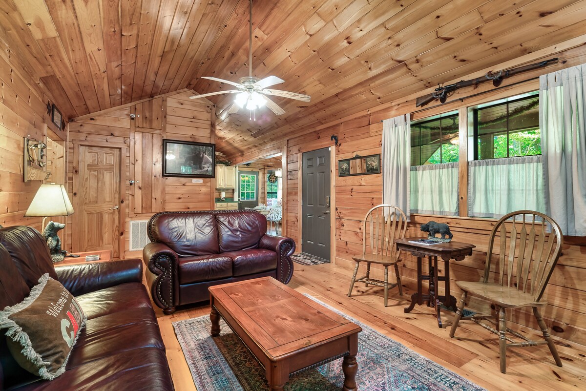 Desconecta de la rutina en este alojamiento único y relajante. Casa de cabaña de troncos de construcción personalizada única. Todo es nuevo: electrodomésticos, muebles, electrónica, sábanas, toallas. Totalmente remodelado por dentro y por fuera. No se han escatimado gastos para que tu estancia sea lo más cómoda y agradable posible. Esta es tu escapada perfecta del bullicio de la vida. Disfruta de tu primera taza de café en tu mecedora en el porche delantero. Totalmente aislado, pero lo suficientemente cerca de lugares de interés populares. Ven y disfruta.