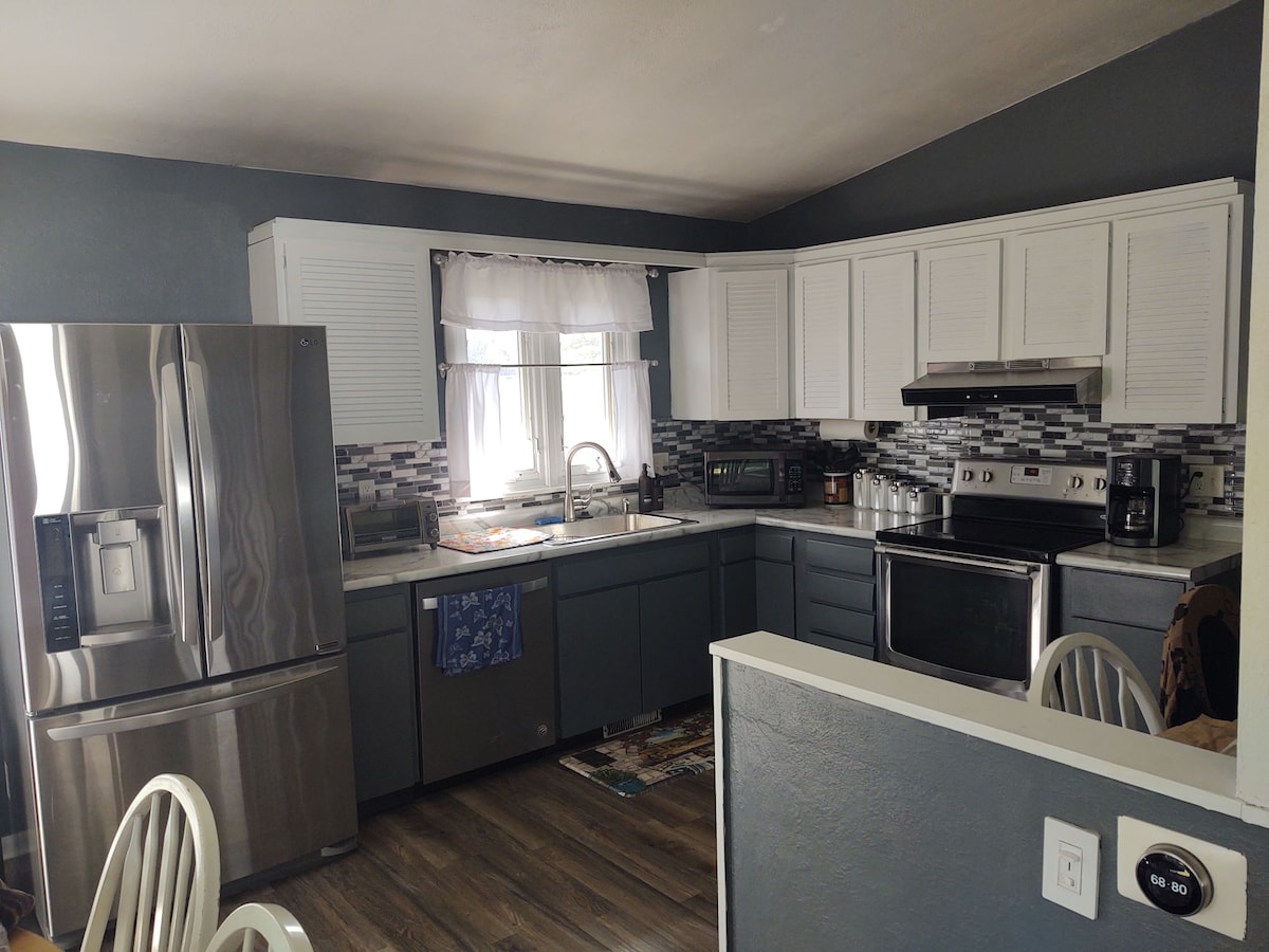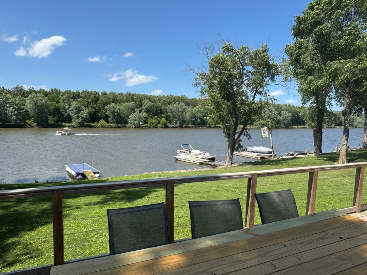 ¡Ven a relajarte y explorar lo mejor de Illinois en nuestro RIVERFRONT RETREAT para familias! Impresionante escapada fluvial de 4 dormitorios y 2 baños en un terreno de un acre y frente al río/acceso. La planta principal es amplia y acogedora, con cocina actualizada, baño completo, sala de estar y comedor. Disfruta de una gran terraza con barbacoa, vistas al río y chimenea en el patio trasero. 4 hermosos dormitorios y un segundo baño completo arriba. ¡La ubicación es perfecta a minutos de todo! Ya sea que estés aquí para hacer senderismo, piragüismo, pescar o escapar de la vida de la ciudad, tenemos lo que necesitas.