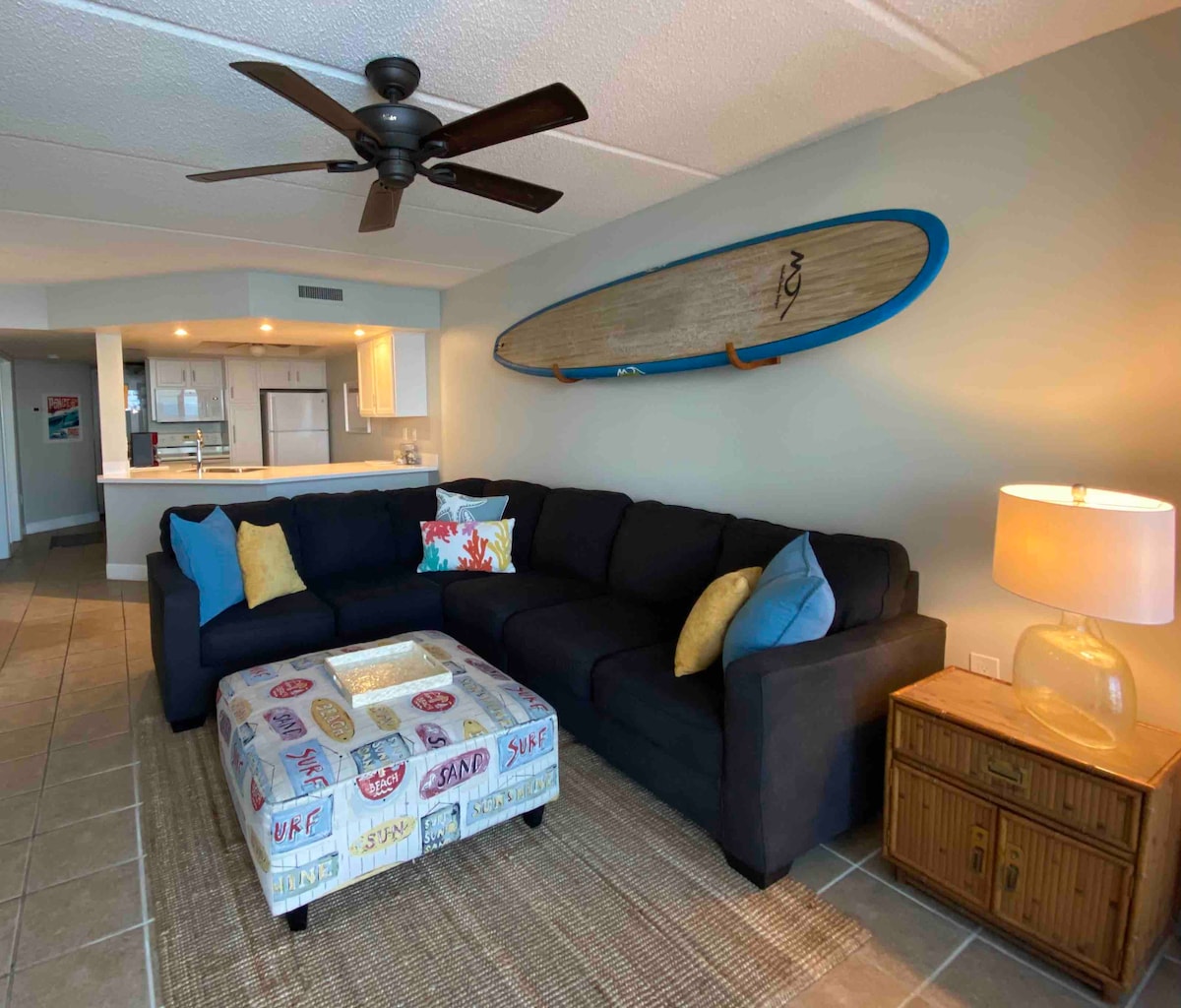 Estamos ubicados en Daytona Beach. un paseo de 1 minuto por el área de la piscina para estar en la playa LA PISCINA ESTÁ ABIERTA Y LA PISCINA CUBIERTA ESTÁ ABIERTA Relájate en nuestro espacio recién remodelado, tranquilo y con estilo. tenemos un refrigerador de tamaño completo, te enamorarás de las vistas a nuestro balcón. Tenemos todas las ollas, sartenes y utensilios de cocina. Todas las sábanas y toallas de playa incluidas. Tenemos 1 cama tamaño king y un sofá futón lo suficientemente grande para 1 adulto o 2 niños pequeños.