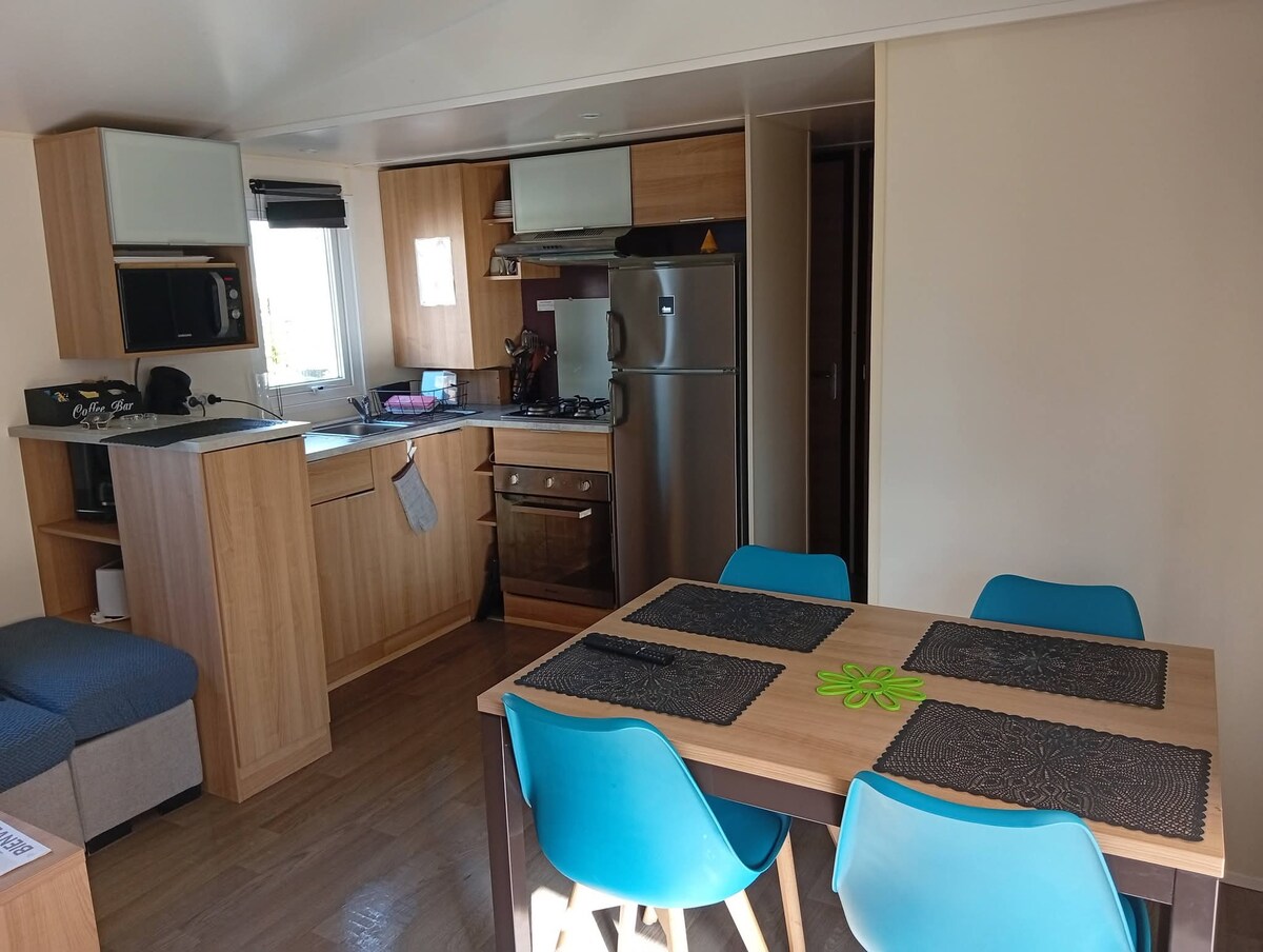 Ubicada en el fondo del jardín, el Ty Neizh (pequeño nido en bretón), le espera para pasar un momento fuera del tiempo. Romántica y bohemia, la caravana ofrece una cama para dos personas (160x180) y una pequeña y acogedora sala de estar. Las comidas se pueden tomar en la terraza, en el jardín o en la caravana. El baño y el aseo son independientes, están situados en la casa principal y son accesibles día y noche Desayuno de productos locales disponible por un suplemento de 5 €/persona.