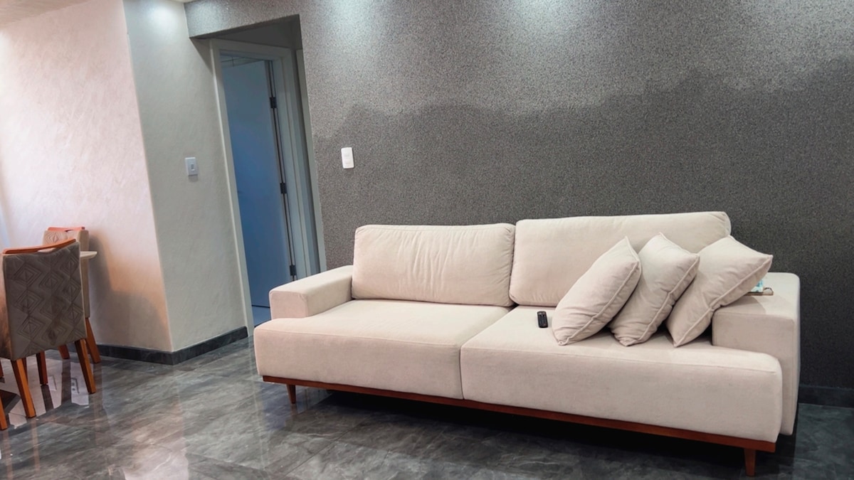Cómodo y práctico, nuestro espacio tiene 2 dormitorios, sala de estar, cocina y baño totalmente equipados. Además, ofrecemos una gran área al aire libre para relajarse o jugar con tu MASCOTA. Todo esto con excelente ubicación y seguridad de un vecindario tranquilo.