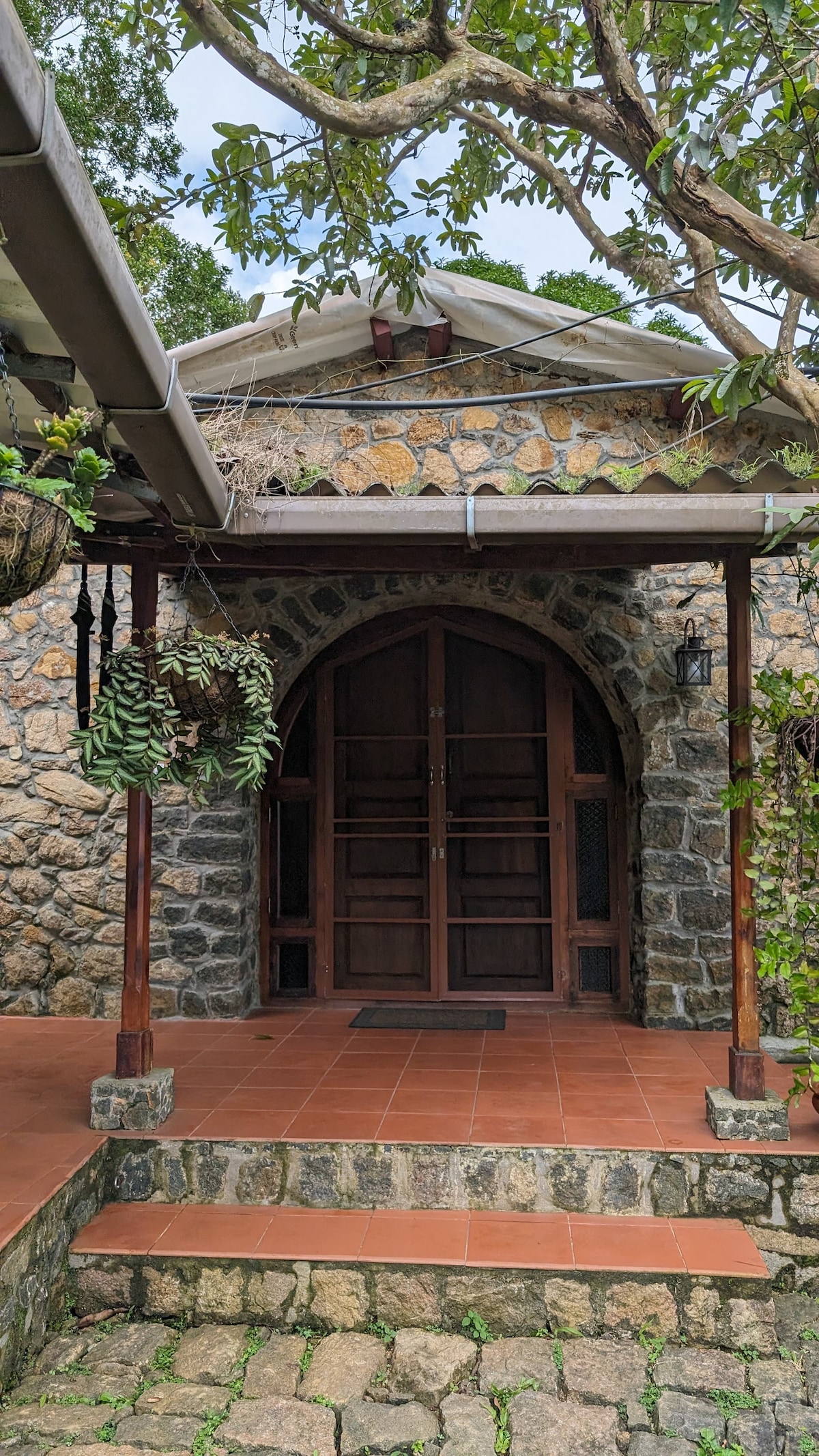 Stone Haven by WanderEase es una casa de piedra de dos dormitorios enclavada en 3,5 acres de exuberante vegetación en Vagamon. Diseñado por la renombrada arquitecta Laurie Baker, esta casa encarna su "Arquitectura paraguas", que combina funcionalidad, sostenibilidad y belleza. Hecha de piedra local, la casa armoniza con sus alrededores, lo que refleja el profundo respeto de Baker por la naturaleza. Sus paredes de piedra ofrecen encanto rústico y durabilidad, que es un modelo de vida ecológica y un homenaje al genio de Baker.