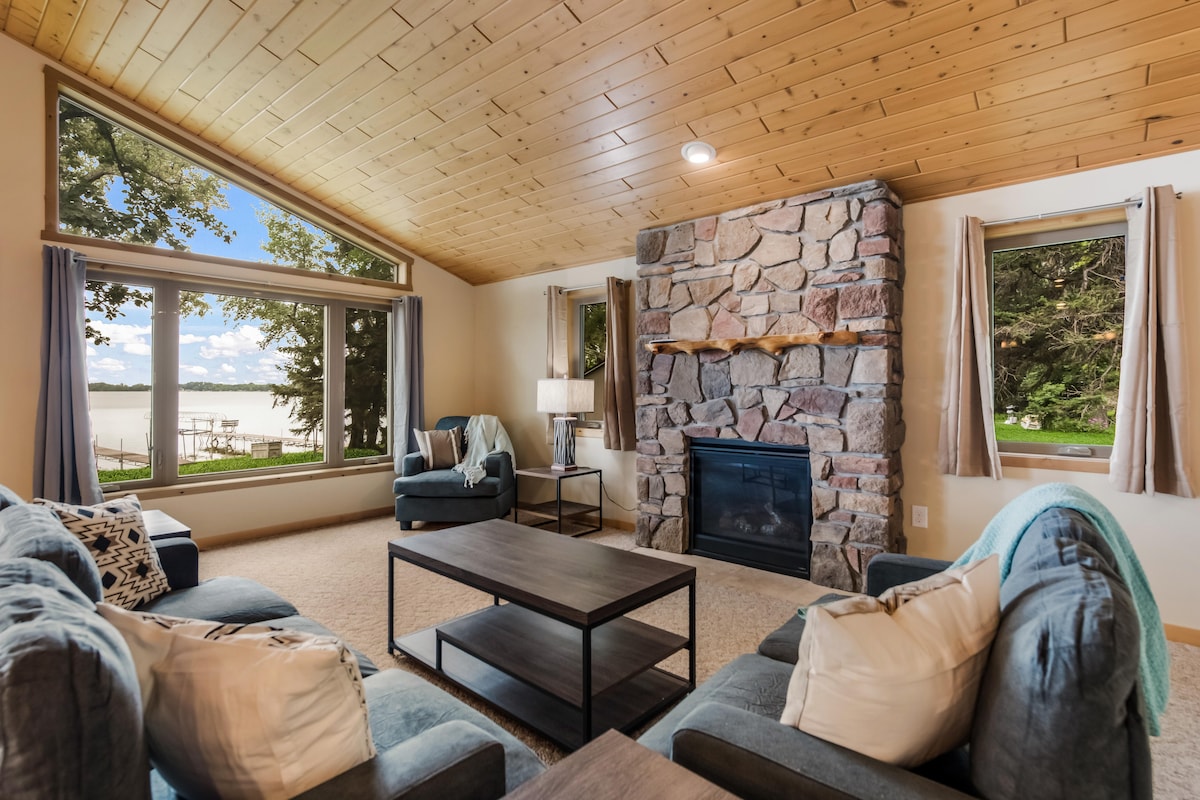 ¡Relájate en tu propia casa de campo privada cerca de la playa y mucho más! Dos dormitorios con camas completas, cocina completa, baño, sala de estar abierta con TV inteligente, futón y amplios asientos. Amplia terraza con parrilla de gas y vistas al lago. Justo enfrente se encuentra la hermosa playa de Starbuck y el embarcadero. Sigue el sendero para bicicletas para tomar un helado junto al puerto deportivo o dirígete al parque estatal para practicar senderismo, montar a caballo y también para practicar senderismo de invierno. ¡Prueba uno de los restaurantes, cervecerías o bodegas de la zona, muchos con vistas al lago! ¡La vida en el lago en su máxima expresión!