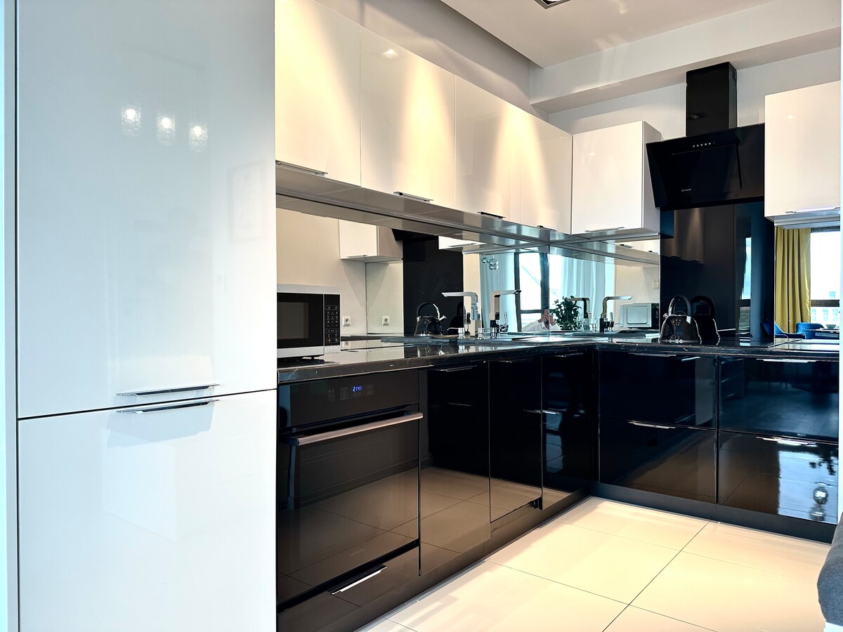 Precioso apartamento recién reformado en un edificio de alto nivel a 5 minutos a pie de la plaza del mercado. Cocina bien equipada, baño, habitación con vistas excepcionales, sofá muy cómodo y ropa de cama superagradable. Muy cerca hay muchos restaurantes, pubs, discotecas, cafeterías, tiendas y, por supuesto, la hermosa arquitectura de la ciudad.