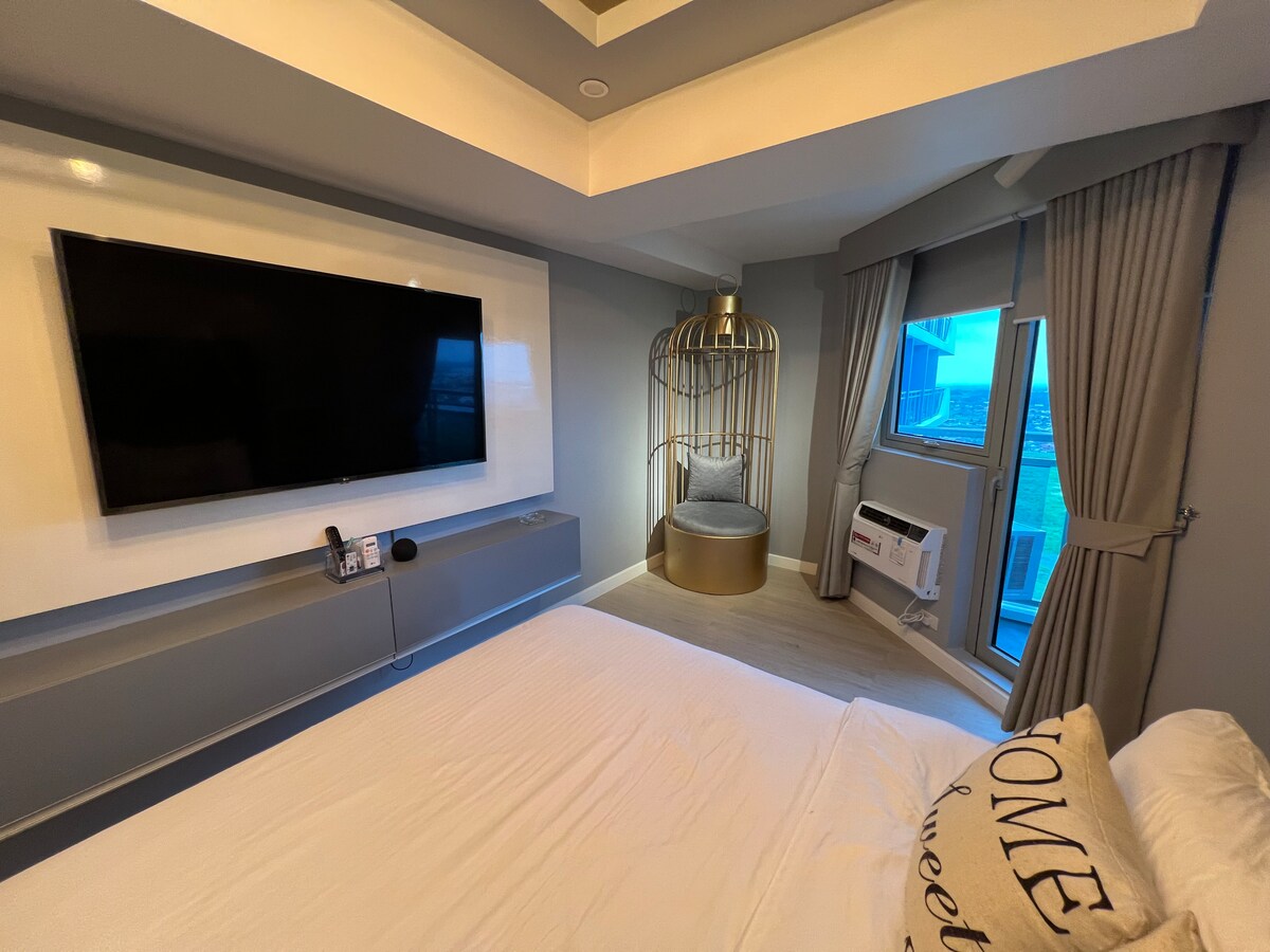 Estudio en el segundo piso con patio sobre la piscina, paquete de Internet ejecutivo, TV Samsung Smart 4K de 55 pulgadas, cocina totalmente equipada con utensilios de cocina, utensilios y cubiertos nuevos. Nueva cafetera de goteo, microondas. Una unidad para no fumadores con balcón con vistas a la zona de la piscina. La Grande Residence se ha convertido en la mejor opción tanto para viajeros de negocios como para turistas que visitan Clark Freeport y la zona de Pampanga. Relájate y desconecta en este alojamiento tranquilo, seguro y elegante.