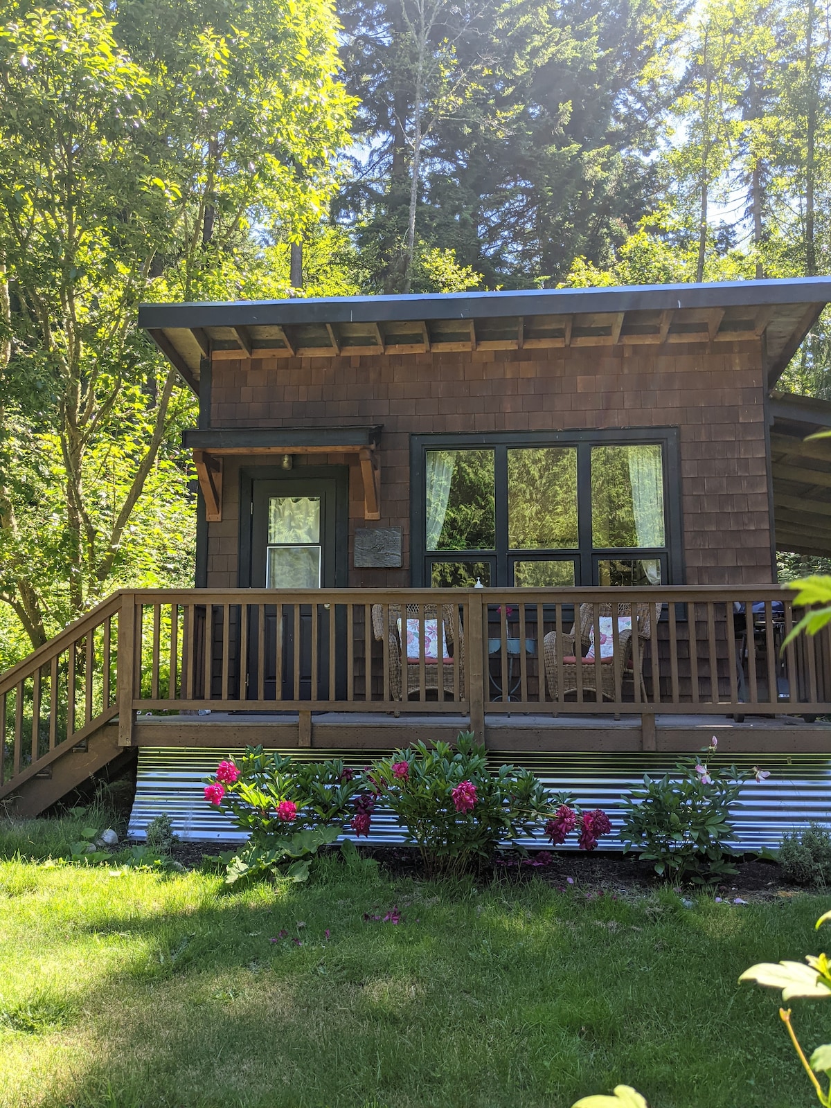 Adorable y pulcra, esta casa de huéspedes «Greenpod» está escondida en 64 acres de bosques y praderas mixtos en las faldas de las montañas Olímpicas. Rutas de senderismo, parques, cascadas, mariscos, rampas para botes y playas para nadar están a pocos minutos. ¡Ven a disfrutar de lo mejor del noroeste del Pacífico! Esta encantadora casa de huéspedes tiene capacidad para dos personas y cuenta con un dormitorio queen, una sala de estar con vistas a la montaña, un baño completo con ducha a ras de suelo y una cocina moderna. ¡Ahora con aire acondicionado y wifi gratuito!