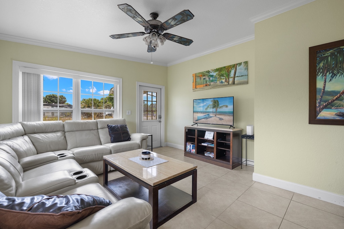 ¡Excelente ubicación! Trae a tu perro, trae tu barco y disfruta del sol de Florida en tu piscina climatizada de agua salada. Pesca en tu muelle privado mientras observas delfines o manatíes. Puedes conocer al resto de los opacarófilos que caminan hasta la playa para ver la puesta de sol. Relájate en el jacuzzi con tu bebida favorita. NOTA: La playa es de arena, pero el agua es SALOBRE, no clara. Este es principalmente un barrio de jubilados. NO es una casa para fiestas y no es apta para niños sin supervisión.