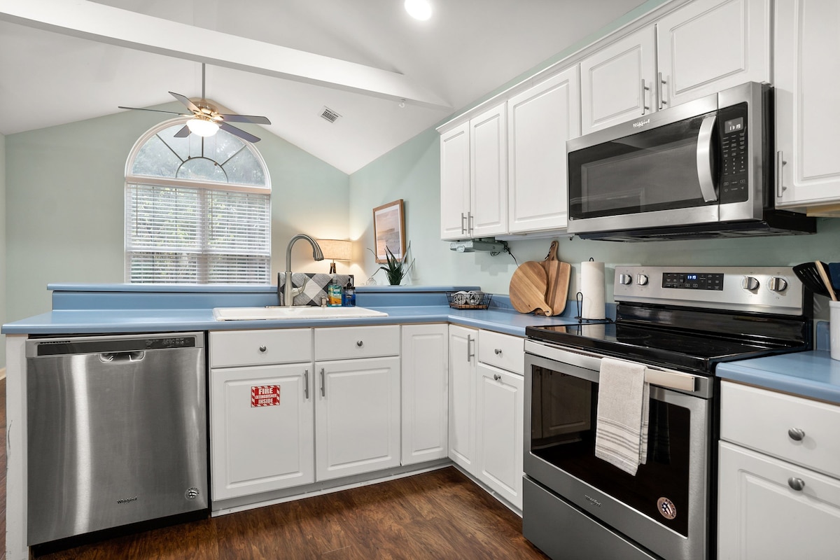 Ubicado entre robles vivos, rodeado de un jardín sureño natural, el Live Oak Retreat ofrece un entorno verdaderamente tranquilo y privado. Esta encantadora casa de campo construida en la década de 1940 se ha renovado recientemente para ofrecer comodidades modernas para una estancia cómoda y relajante. Estamos a pocos pasos del distrito histórico del centro de la ciudad y a pocos pasos de la ruta de ciclismo/senderismo Spanish Moss. ¡Conveniente para la isla de París (6 millas) y a 25 minutos en coche del Parque Estatal de Hunting Island para un día en la playa!
