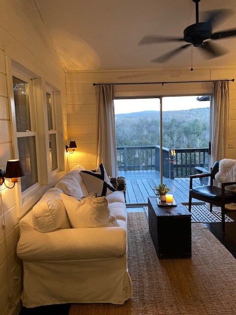 The Little Black Cabin is everything you've been dreaming about for your cozy mountain getaway! Take in sweeping views, curl up by the fireplace, or make s'mores at the fire pit. Whip up a gourmet meal in the small but well-appointed kitchen. Three dining areas offer options for dinner -- or a remote office, thanks to wifi. Sample nearby hiking, yoga, and farmers' market. We're a little rustic (no TV, AC, microwave, laundry or dishwasher) and a lot stylish!