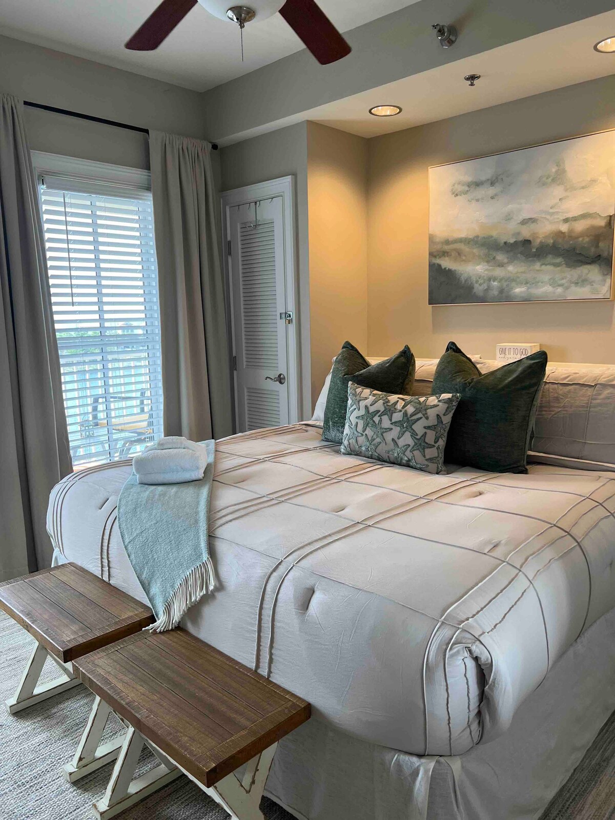 Una suite espectacular junto al agua, especialmente diseñada para traer la belleza natural de uno de nuestros lagos de dunas costeras más grandes a una habitación llena de comodidad y placer con muebles de diseño costero, telas placenteras y colores atemporales. Esta suite del tercer piso tiene una sala de estar relajante, cocina con comedor y un baño modernizado con ducha. Una terraza íntima ofrece unas vistas panorámicas increíbles del lago Powell. Hay varias unidades de alquiler disponibles. Visita mi perfil.