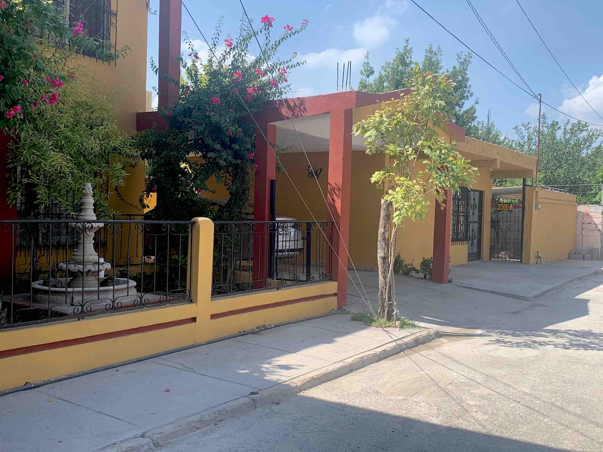 🌟 Disfruta de una estancia cómoda y segura en nuestra amplia casa perfecta para familias, amigos o viajes de negocios. Las recámaras son acogedoras y cuentan con aire acondicionado y TV con Netflix y Roku. Relájate en un entorno seguro en un fraccionamiento privado con acceso restringido. Estamos a 5 minutos de la zona centro, 10 minutos del estadio Lucky Eagle, a tan solo unas cuadras de la avenida principal. Contamos con cama para 6 personas, si tú grupo es mayor pregunta al anfitrión.