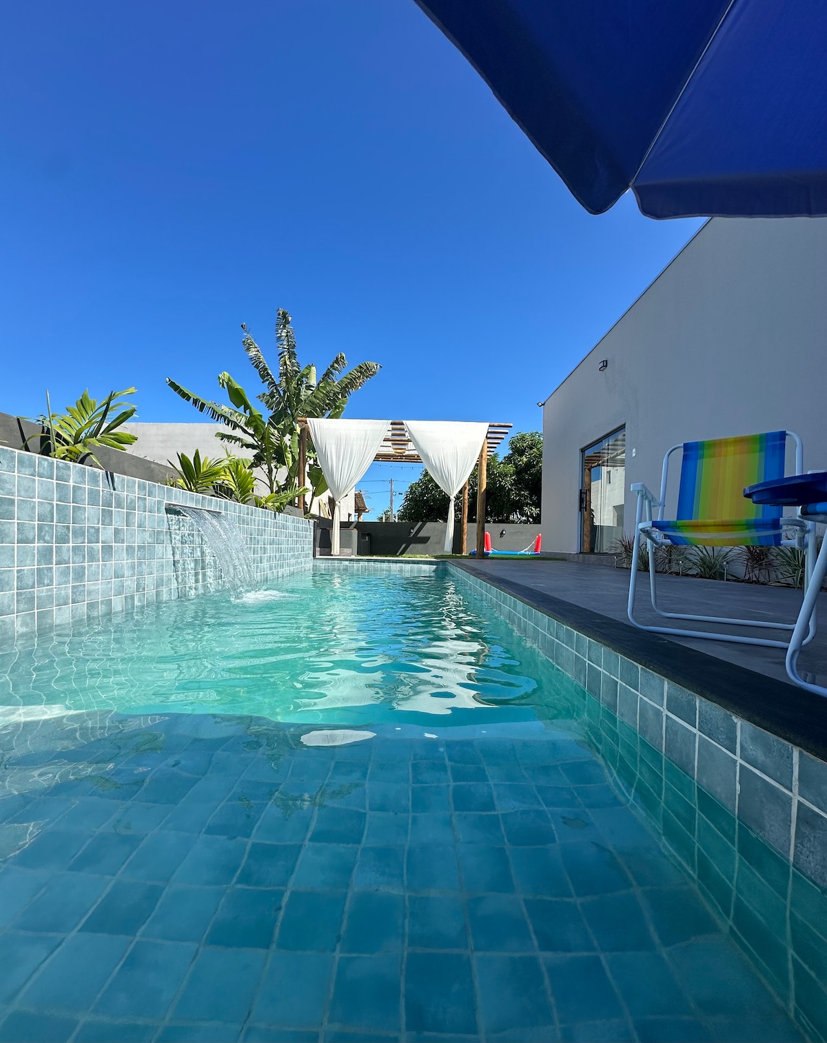 hermosa casa, piscina exclusiva con cascada.