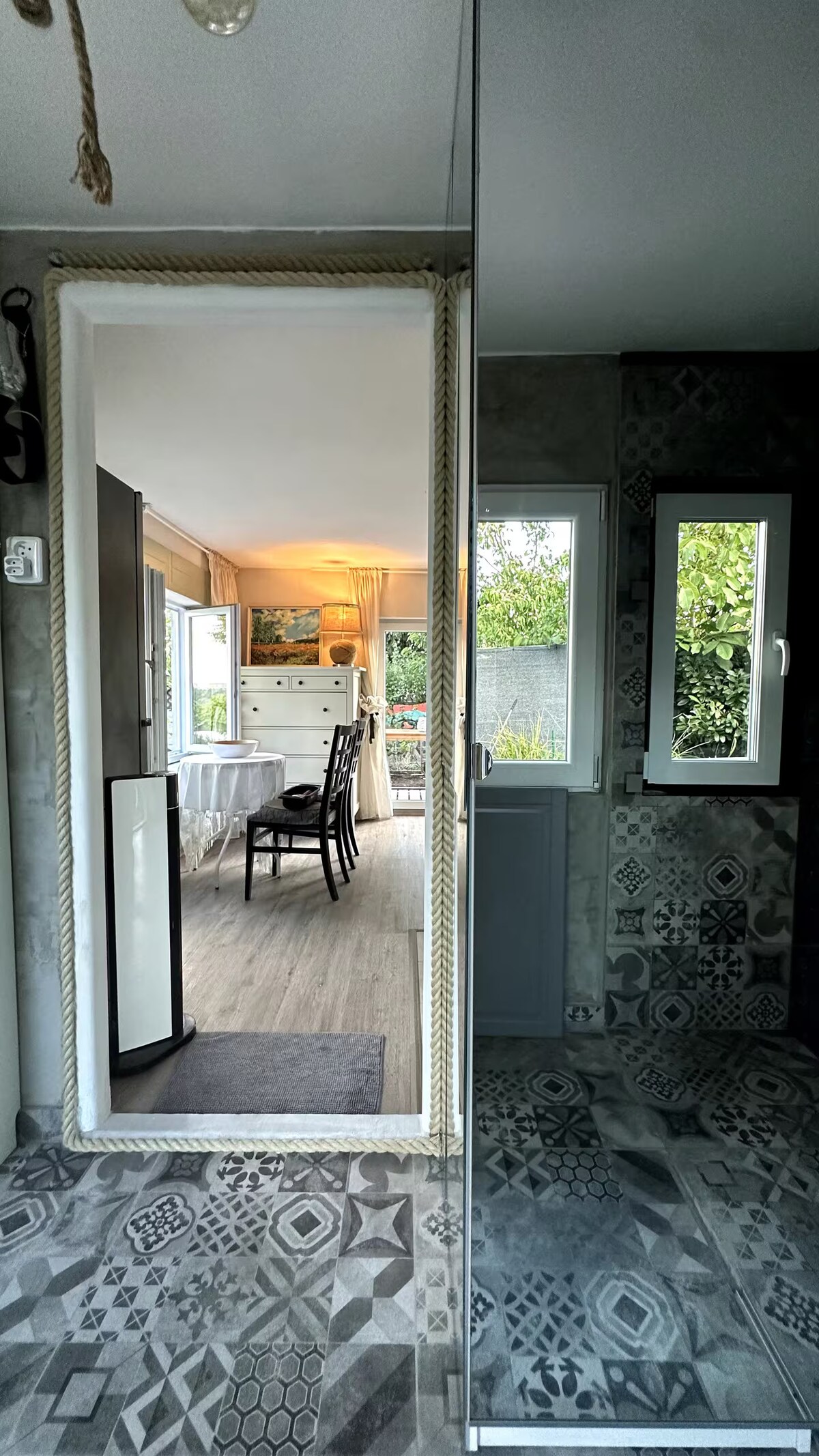 Lujoso apartamento villa cubista en una tranquila zona residencial verde. El apartamento amueblado totalmente original con entrada privada tiene una superficie de 75 m². Parqueadero seguro, frente a la casa. Hermoso jardín grande. Cocina (totalmente equipada), dormitorio para 2 personas (cama para bebés disponible), sala de estar (podemos organizar un colchón para una tercera persona, idealmente un niño o un adolescente), baño con bañera y ducha (albornoces incluidos). Lavadora y secadora. Se admiten perros por una tarifa de 10 EUR/día.