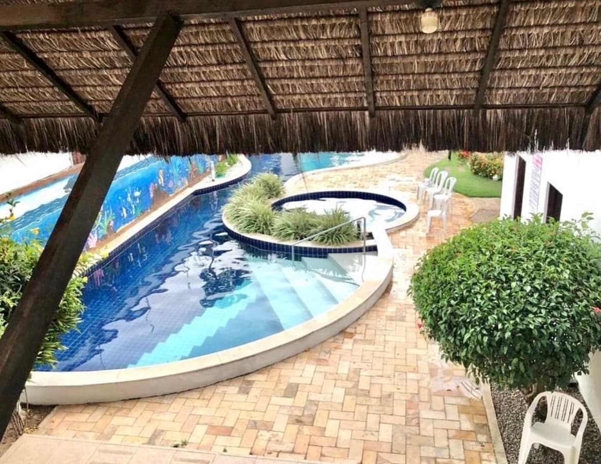 Casa 40 mq con terraza 10 mq, baño con agua caliente, aire acondicionado, TV, cocina americana con utensilios, microondas, sandwichera, licuadora, cafetera. Veranda con rete.. casa en un lugar tranquilo cerca de pisina 10 mt En el centro vacacional Seguranca de 24 horas, piscina de 400 m2 con piscina para niños, mojo bar, restaurante. El desayuno se puede pedir en el bar y pagar en el bar. CASA A CERCA DE LA PISINA (10/15 metros de distancia, Nao está frente a la pisina, está cerca de la pisina