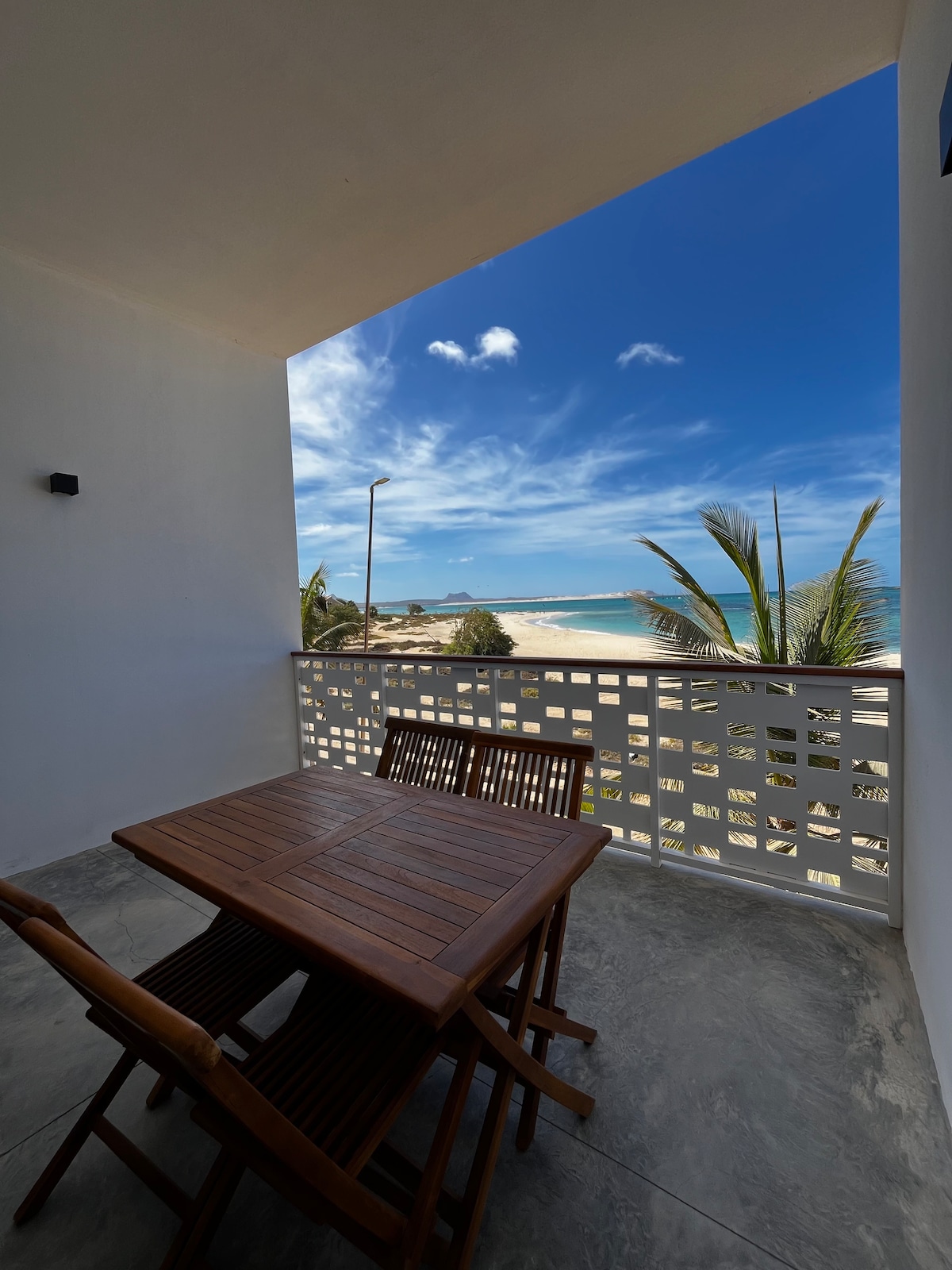 Situado a 200 metros del centro de Sal Rei, a 300 metros de la playa de enfrente, a 400 metros de la playa de Cabral y a 650 metros de la playa de Estoril, el apartamento ofrece la ubicación perfecta para aquellos que quieren explorar las hermosas playas de Sal-Rei y tener fácil acceso a mercados y restaurantes. El apartamento es moderno, está bien equipado, tiene habitaciones amplias y una decoración exquisita con una vista deslumbrante del islote de Sal Rei, las playas de Estoril y Chaves. Habitación suite con armario y balcón con vista al mar.