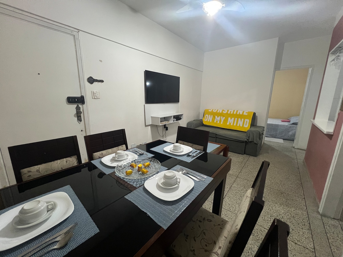 Apartamento cuidadosamente diseñado, recién reformado, para recibirte a ti y a tu familia. Frente a la mejor playa de São Vicente, llena de bares, restaurantes y panaderías a su alrededor. Aire acondicionado en todas las habitaciones. Cerradura electrónica, lo que facilita el check-in y el día a día de su estancia.