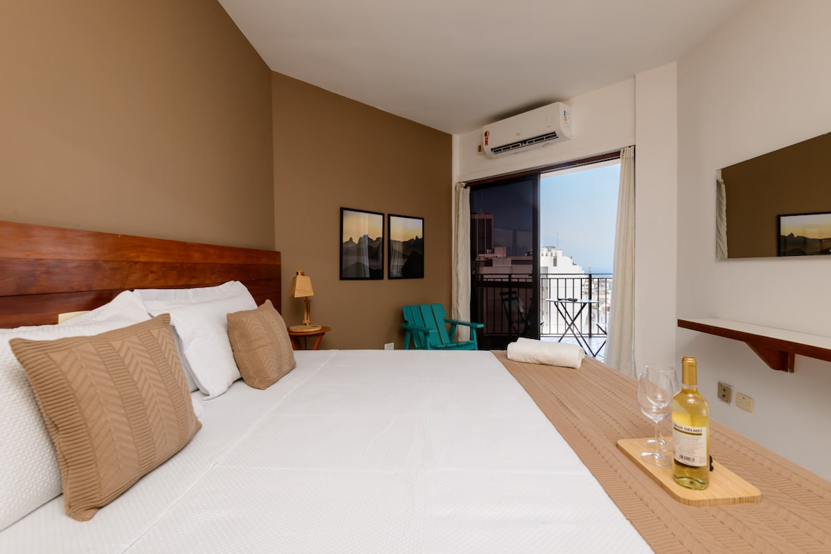 ¡Comodidad, estilo y balcón privado con vistas impresionantes! Llegada y salida selfie. Portería 24 horas y servicio de consigna de equipaje gratuito. El piso alto y las ventanas con protección acústica garantizan el silencio interior. Los huéspedes tienen acceso a la piscina del edificio. Junto a la playa, en la plaza General Osório, corazón del barrio, con metro en la puerta, bares, restaurantes, tiendas. Sin tarifa de Airbnb, ¡pagamos por ti! El departamento cuenta con servicio de limpieza diario.