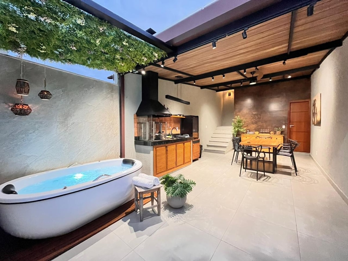 Casa con influencia de las villas balinesas, rústica pero extremadamente acogedora y refinada, con todo de los más altos estándares, muebles, electrodomésticos, cama y baños. Área Gourmet Dreams con parrillas de gas y carbón, horno de leña, estufa y ahumador. Spa con 1400 litros de agua caliente, una sauna toda en piedra Hijau con vistas panorámicas del bosque. 5 pantallas enormes, 2 de ellas de 75". Equipamentos Elettromec, Kitchen Aid, Le Creuset. Internet 500 Mb. ¡Paraíso para los amantes de la comida!