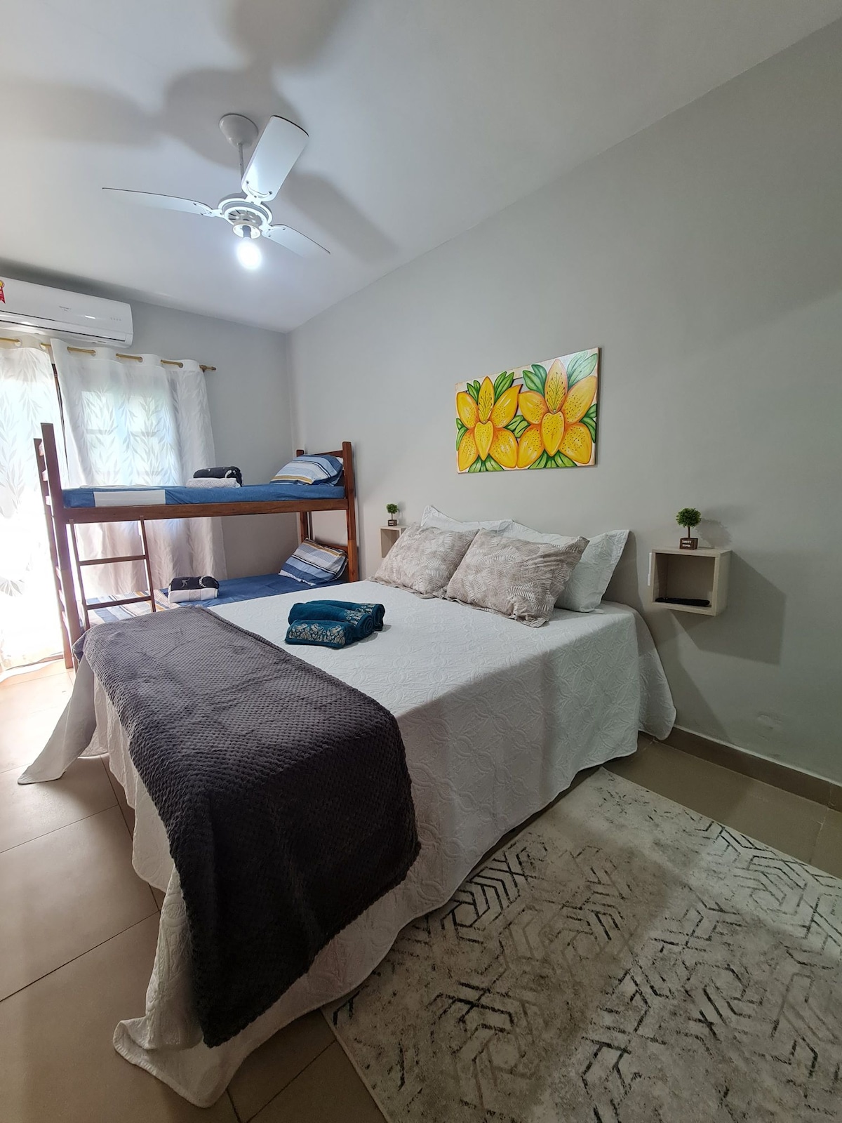 ¡Casa de nueva construcción! ¡Tenemos 1 suite para un máximo de 4 personas (dormitorio y baño privado) cama tamaño queen con colchón de tecnología americana, ventanas y puertas con mosquiteros, minibar 122L, aire acondicionado, piscina y cocina al aire libre compartida, todo equipado! ¡Tenemos 4 suites en total frente a la piscina y las entradas independientes! Estamos en medio del condominio totalmente seguro en Rua 6, Rua da SAI, que facilita el acceso a pie a la playa y al comercio de Itamambuca.