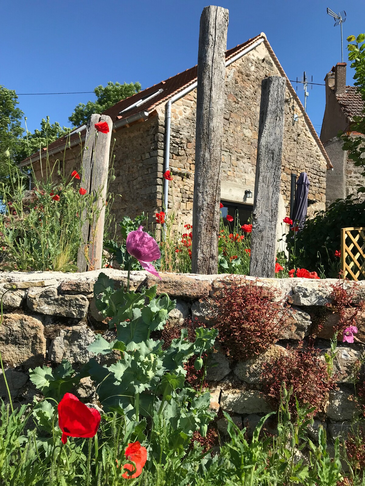 Escapa del mundo loco y quédate en esta casa de piedra en un tranquilo pueblo borgoñón en el corazón de la campiña de Auxois. Te esperan colinas verdes onduladas, senderos antiguos, aire fresco del campo, canto de pájaros y noches estrelladas. Es posible que pases la mayor parte de tu tiempo en este refugio de paz y tranquilidad y pasees un poco más allá del jardín cerrado. También puedes aventurarte y descubrir sitios de la UNESCO, pueblos en la cima de una colina, ciudades medievales y los lagos y senderos del Parque Morvan.