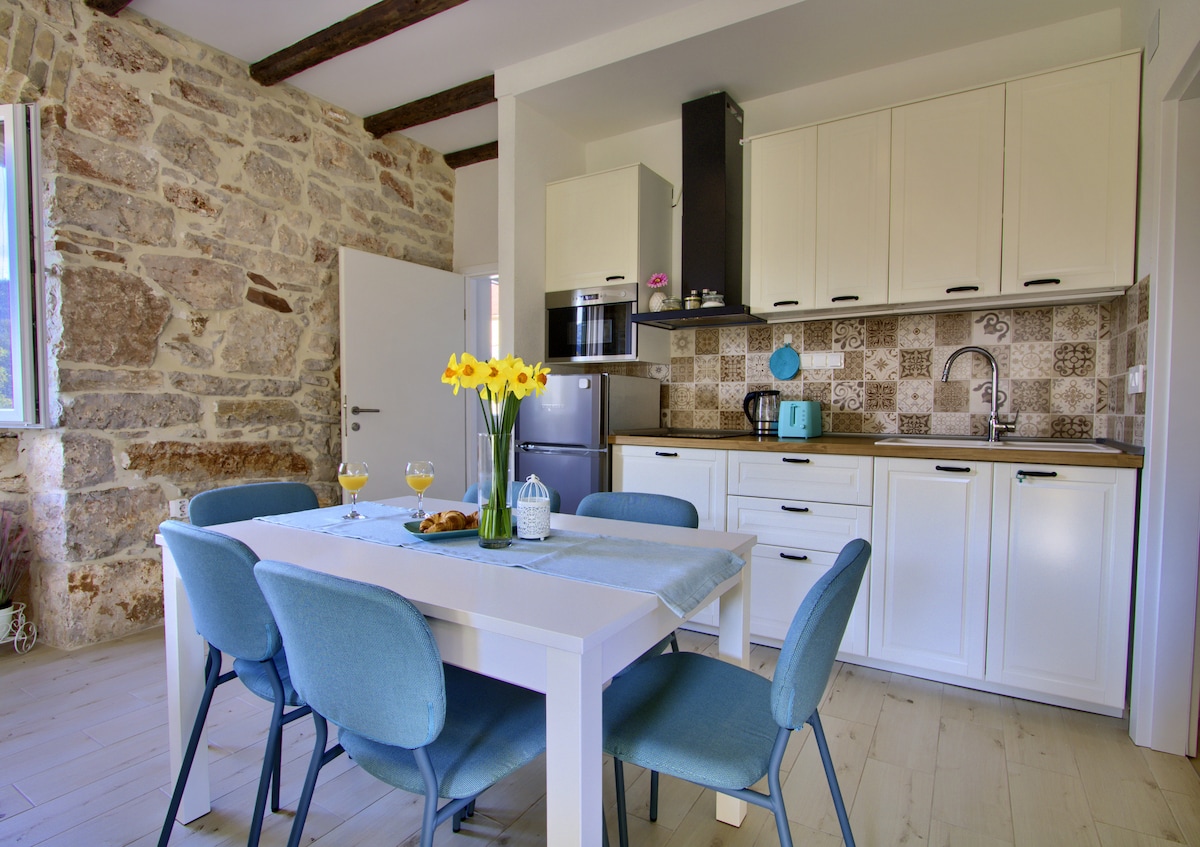 El apartamento con VISTAS AL MAR está ubicado en el corazón de Kali. Esta antigua casa de piedra en fila fue construida en el año 1900 y tiene el alma del Mediterráneo como lo fue una vez. ¡Lo primero que te ocupa cuando entras en el apartamento es la magnífica vista! Este apartamento cuenta con todo lo necesario para unas vacaciones en la isla, cuenta con un gran patio para que los niños jueguen y una barbacoa a la parrilla en el jardín. Se encuentra a solo 20 metros del mercado y del bar de café, y a 150 metros de hermosas playas y mar cristalino...