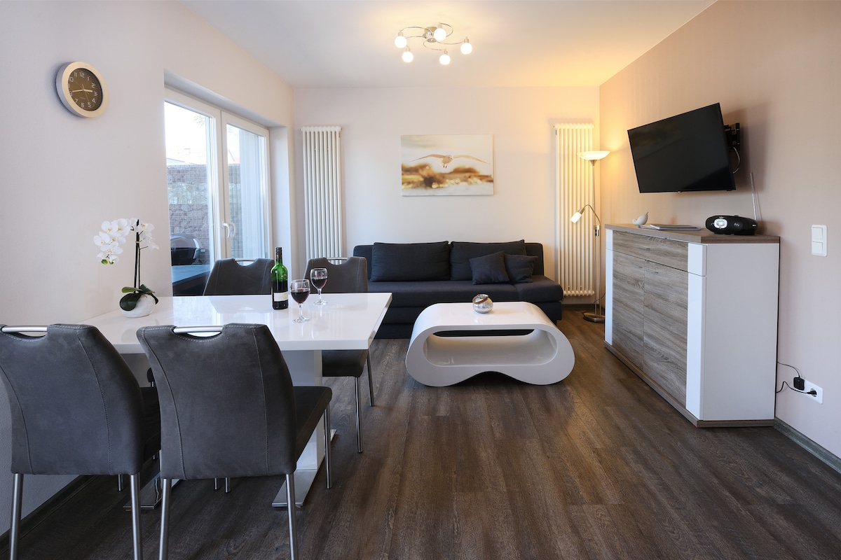 El apartamento de vacaciones con entrada independiente está equipado con materiales de alta calidad. Calefacción por suelo radiante con tablas de roble, chimenea y baño de alta calidad (bañera y ducha). La cocina equipada con lavavajillas está muy bien equipada y también tiene una máquina de cápsulas Nespresso. Las amplias ventanas panorámicas y la terraza orientada al suroeste con vistas a la reserva natural de Trapen le invitan a relajarse. Disfrute de la desaceleración de la vida cotidiana: ¡bienvenido a la vida!