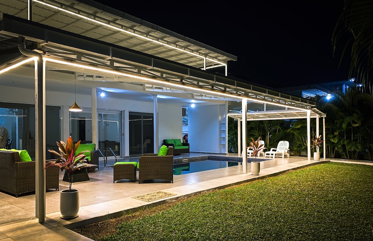Si vienes a Sihanoukville, con sus kilómetros de hermosas playas, ¿por qué alojarte en una aburrida habitación de hotel cuando puedes disfrutar de todo esto?: dormitorio con baño privado, piscina, zonas de descanso cubiertas, cocina al aire libre, uso de la cocina/comedor/sala de estar de planta abierta. Mosquiteros en todas las puertas y ventanas, todas las habitaciones tienen aire acondicionado y ventiladores, wifi estable, lavadora, totalmente amueblado. Ubicación cuesta arriba con brisa, acceso rápido a las playas, cerca de la ciudad pero tranquilo. ¡Un lugar perfecto para relajarte y relajarte!